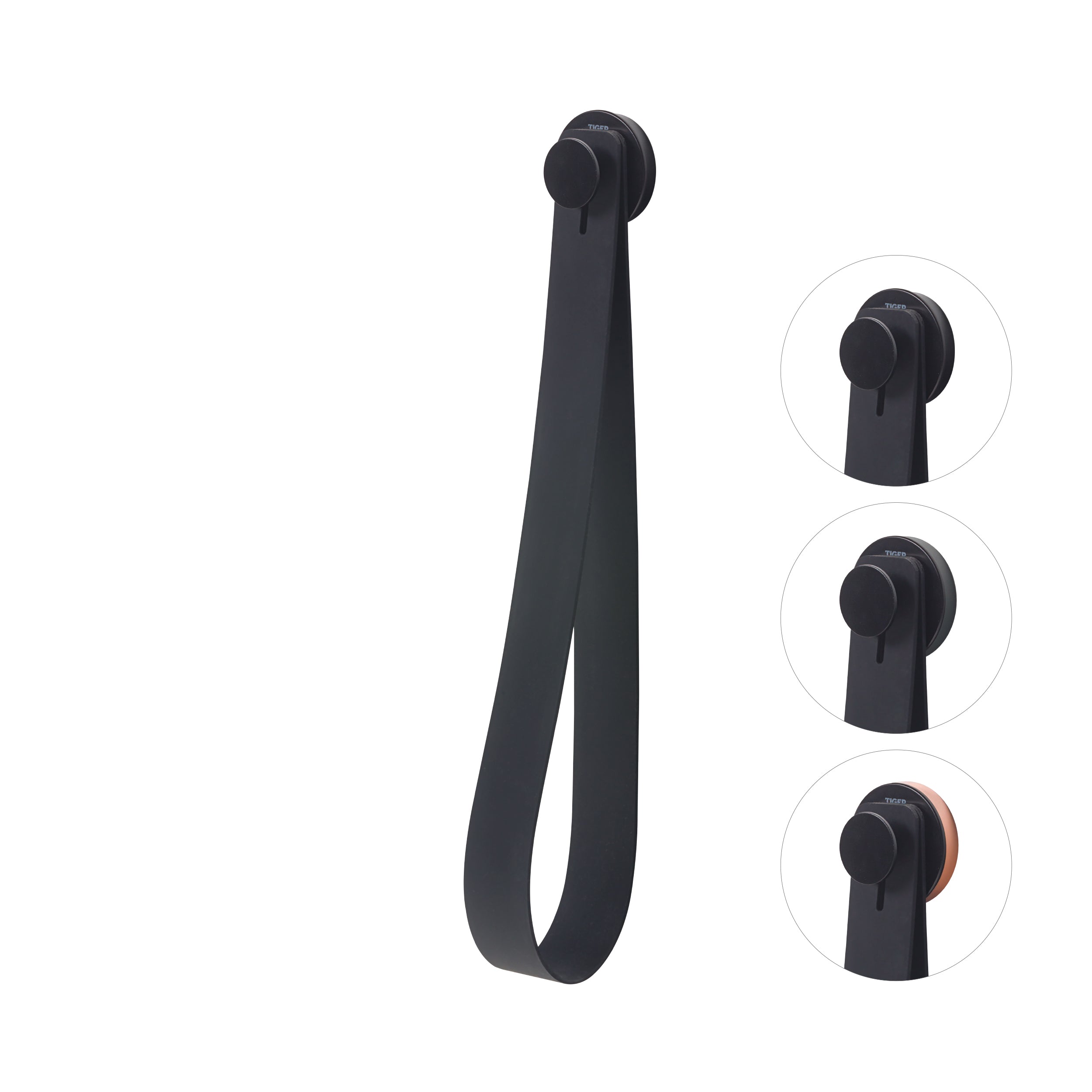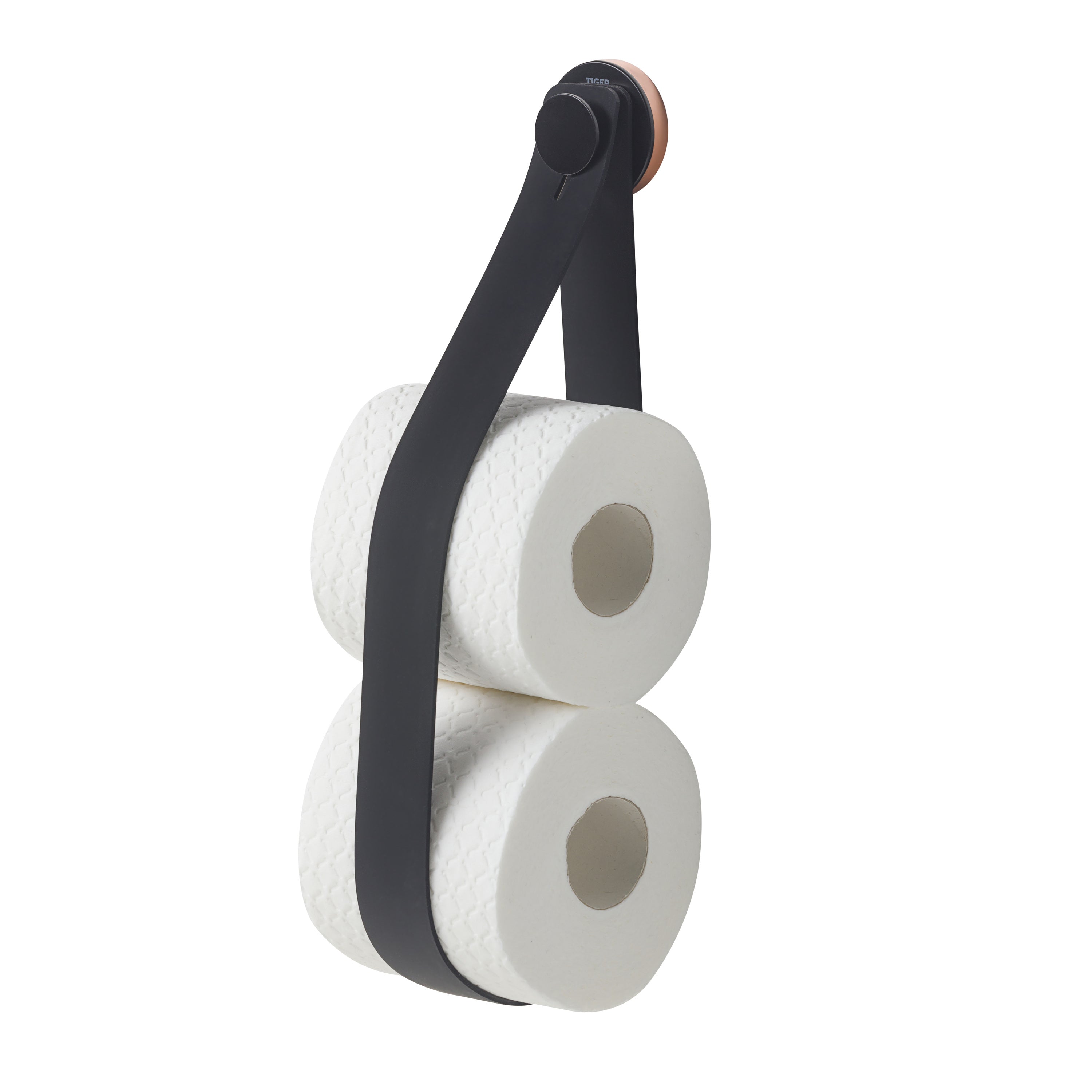De reserverolhouder uit de Urban serie van Tiger is uitgevoerd in de kleur mat zwart en wordt geleverd met twee decor ringen. De decor ringen, in de kleur koper en grijs, maken het mogelijk een subtiel kleuraccent toe te voegen. Het is ook mogelijk de toiletrolhouder zonder de decor ring te monteren waardoor het zeer eenvoudig is om het product aan de gewenste stijl aan te passen. De flexibele band biedt plaats aan twee extra rollen toiletpapier zodat er altijd voldoende papier beschikbaar is. Bij de montage van het artikel wordt gebruik gemaakt van een muurplaatje waardoor de bijgeleverde bevestigingsmaterialen uit het zicht verdwijnen. De Urban serie bevat tevens ook een groot aantal aanvullende accessoires voor de badkamer en toiletruimte. Alle in dezelfde stijl.De reserverolhouder is tevens geschikt voor montage met TigerFix type 1, waarmee accessoires snel en eenvoudig op een gladde, harde ondergrond te bevestigen zijn door middel van een gepatenteerd lijmsysteem. Boren is niet noodzakelijk en de accessoires zijn eenvoudig te verwijderen zonder dat er resten op de ondergrond achterblijven. TigerFix is apart verkrijgbaar.