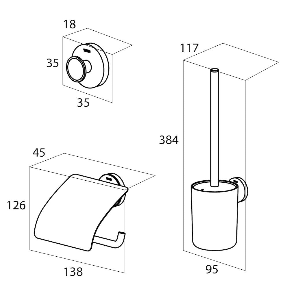 - Complete set: handdoekhaak, toiletrolhouder met klep en toiletborstelset