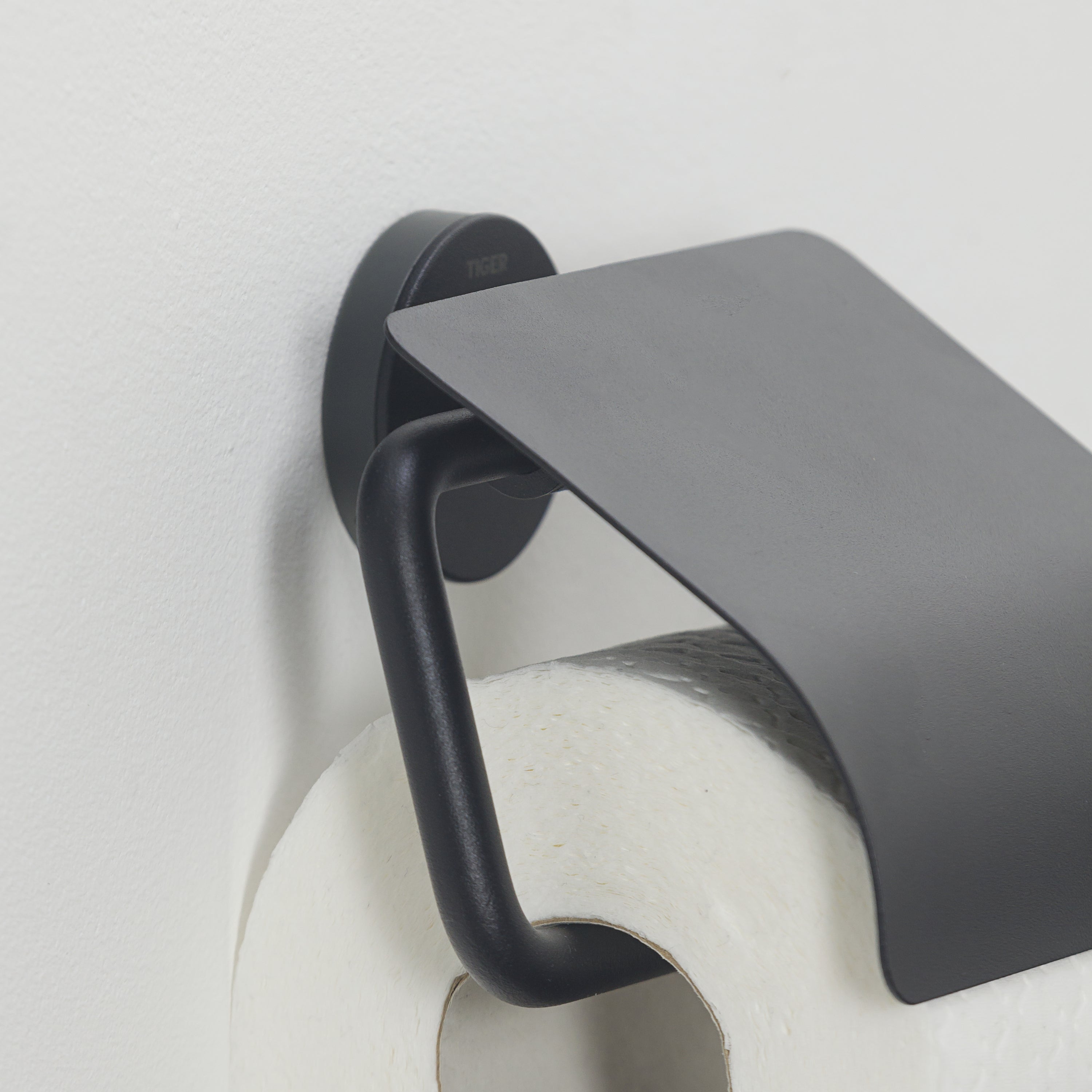 De toiletrolhouder met klep uit de Urban serie van Tiger is uitgevoerd in de kleur mat zwart en wordt geleverd met twee decor ringen. De decor ringen, in de kleur koper en grijs, maken het mogelijk een subtiel kleuraccent toe te voegen. Het is ook mogelijk de toiletrolhouder zonder de decor ring te monteren waardoor het zeer eenvoudig is om het product aan de gewenste stijl aan te passen. Bij de montage van het artikel wordt gebruik gemaakt van een muurplaatje waardoor de bijgeleverde bevestigingsmaterialen uit het zicht verdwijnen. De Urban serie bevat tevens een groot aantal aanvullende accessoires voor de badkamer en toiletruimte. Alle in dezelfde stijl. De toiletrolhouder is tevens geschikt voor montage met TigerFix type 1, waarmee accessoires snel en eenvoudig op een gladde, harde ondergrond te bevestigen zijn door middel van een gepatenteerd lijmsysteem. Boren is niet noodzakelijk en de accessoires zijn eenvoudig te verwijderen zonder dat er resten op de ondergrond achterblijven. TigerFix is apart verkrijgbaar.