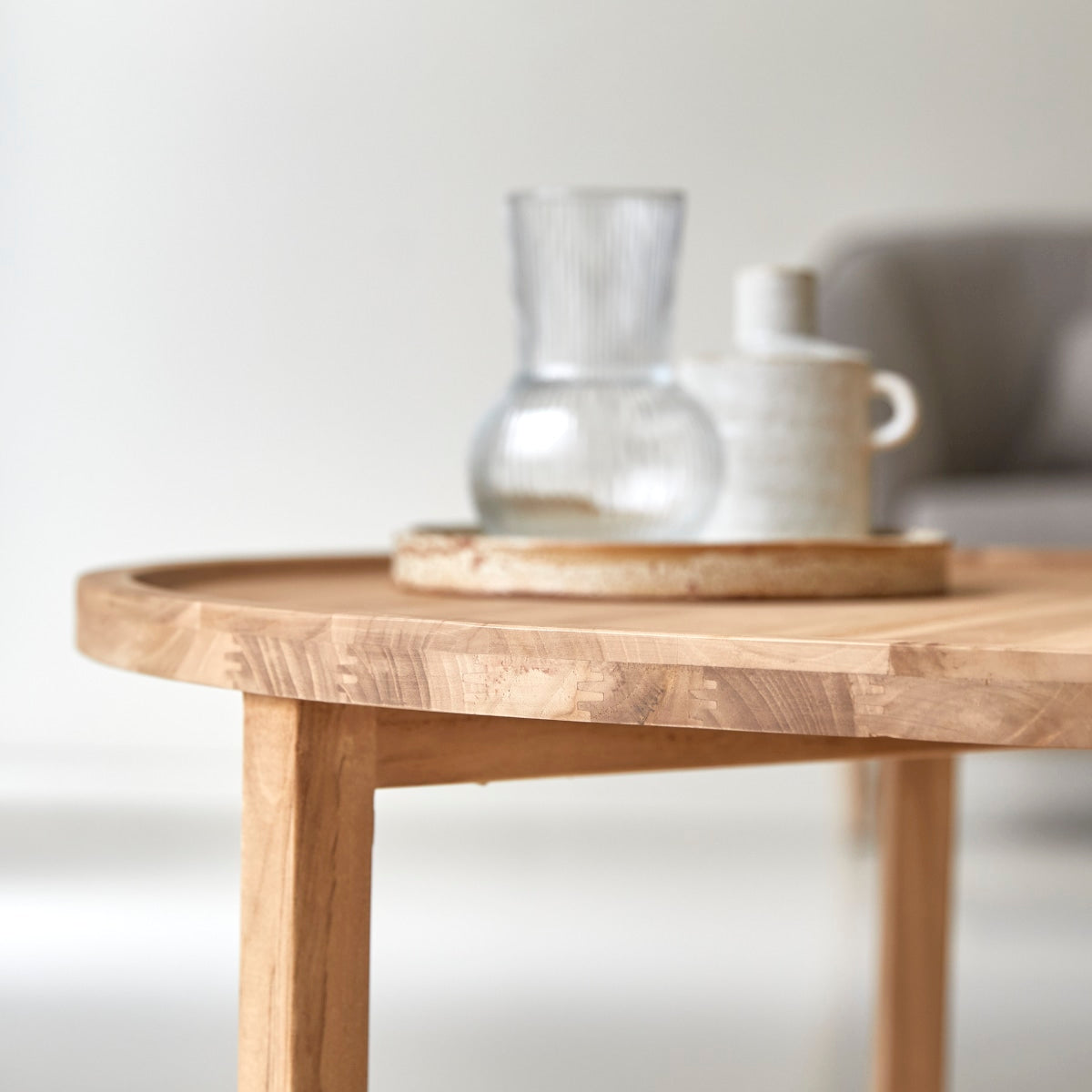 De massief teakhouten met FSC-certificaat® salontafel 90 Ana heeft elegante, eenvoudige lijnen, precies de juiste hoeveelheid originaliteit en een prachtige natuurlijke uitstraling.