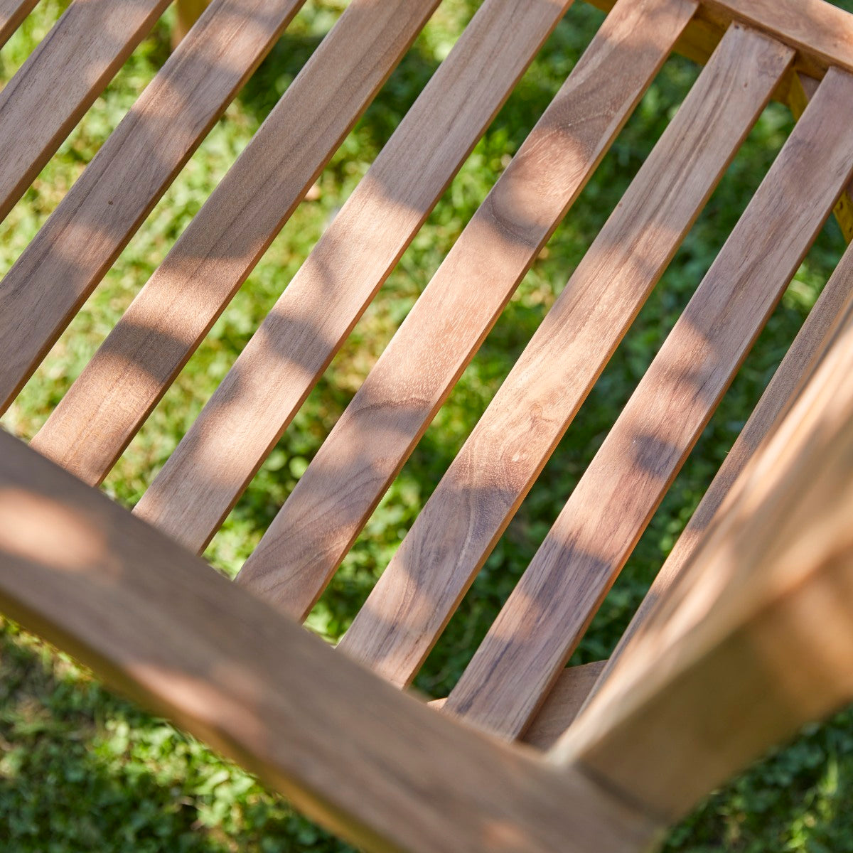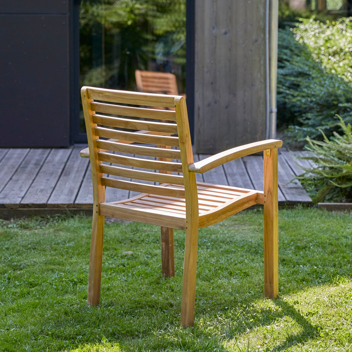 Laat u verleiden door het eenvoudige en strakke ontwerp van teakhout met latten, dat in alle eenvoud een moderne toets aan uw exterieur zal geven. In een natuurlijke houttint maakt hij indruk met zijn eenvoudige elegantie. En dankzij de armleuningen kunt u comfortabel zitten.