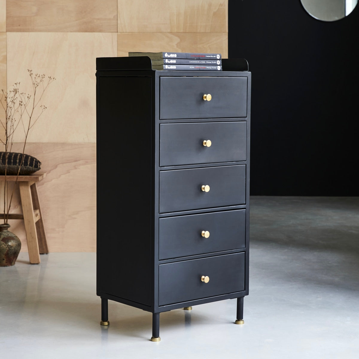De metalen ladekast Anika met 5 lades heeft de werkplaatsen aan het begin van de vorige eeuw verlaten om zich te nestelen in onze hedendaagse interieurs! Zeer praktisch voor het opbergen van verschillende voorwerpen op een zeer georganiseerde manier, afhankelijk van zijn plaats in huis: in de woonkamer voor het tafellinnen, in de keuken voor de kruiden of de potten en pannen bijvoorbeeld, in de slaapkamer voor kleine kleding of het beddengoed... tot in de badkamer voor de schoonheidsproducten en andere toiletartikelen!
