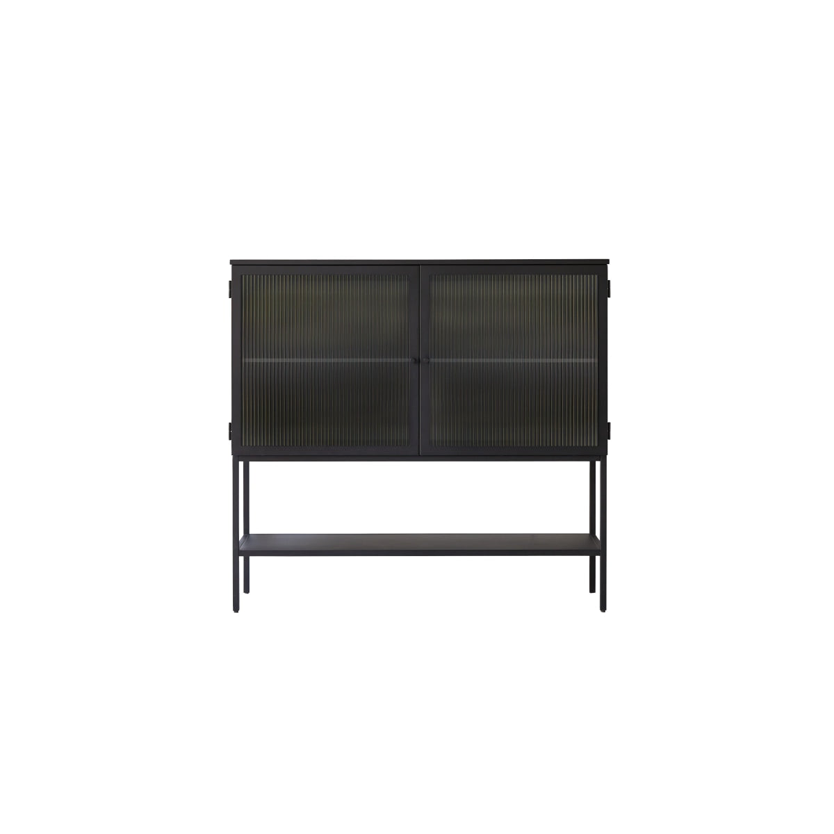 Op zoek naar stijl zonder het hele huis te veranderen? Met het metalen dressoir Antonin geeft u eenvoudig een originele draai aan elke kamer! Hij heeft een industriële look en bereikt een perfecte harmonie tussen twee ongelijkwaardige materialen: glad metaal beschermd door een poedercoating (die het heldere uiterlijk van het metaal niet uitvlakt) en doorschijnend gehard glas dat u laat raden zonder te onthullen wat er in zit. Dit prachtig bewerkte dressoir biedt tijdloos elegante opbergruimte voor servies en tafellinnen. Op een plank aan de onderkant kunt u mooie voorwerpen uitstallen... u kunt er ook boeken of open nissen met voorwerpen op zetten. De deuren hebben subtiele handgrepen en blijven gesloten dankzij slim geplaatste magneten.