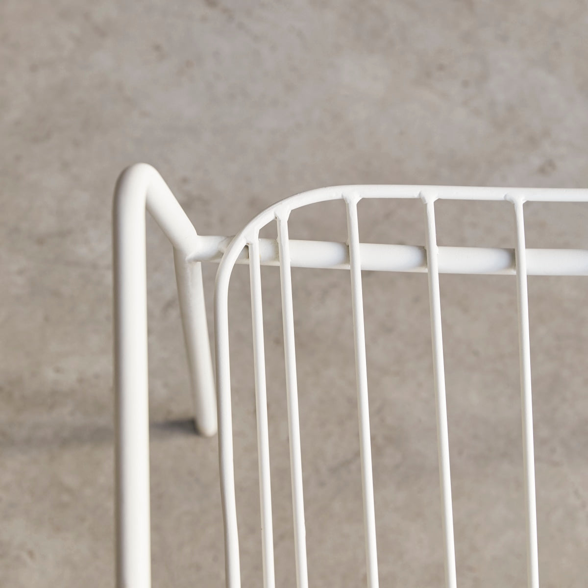 Met een knus kussen vindt de metalen armstoel zijn plaats in de slaapkamer of de boekenhoek.