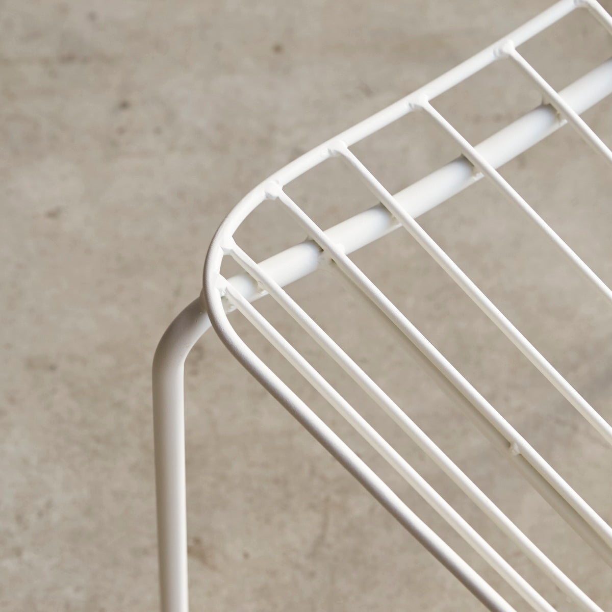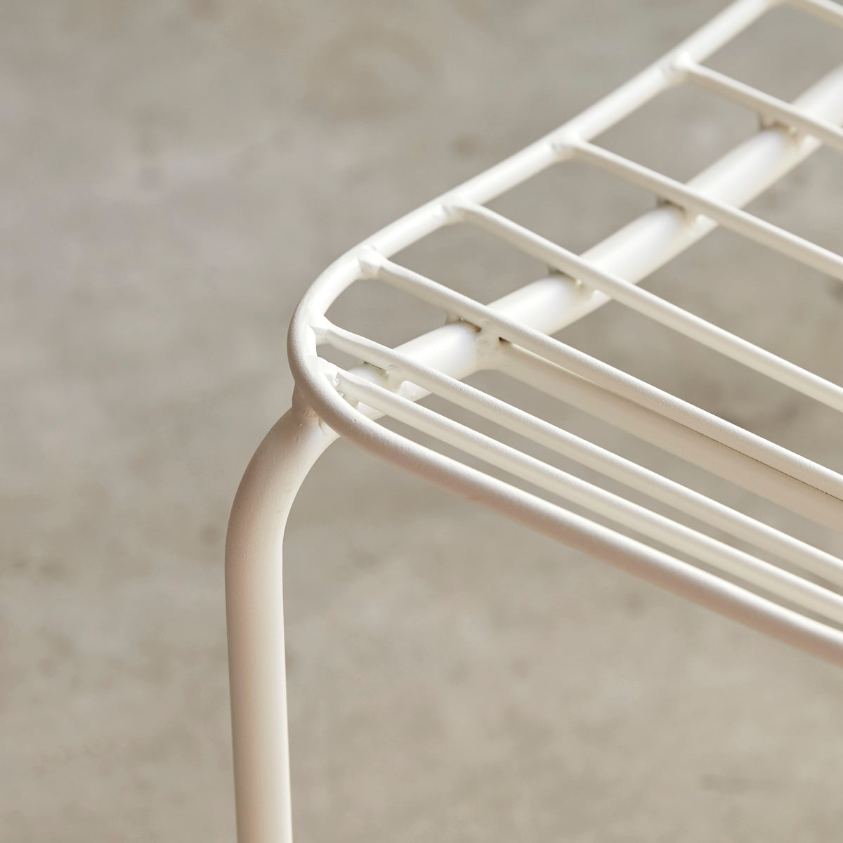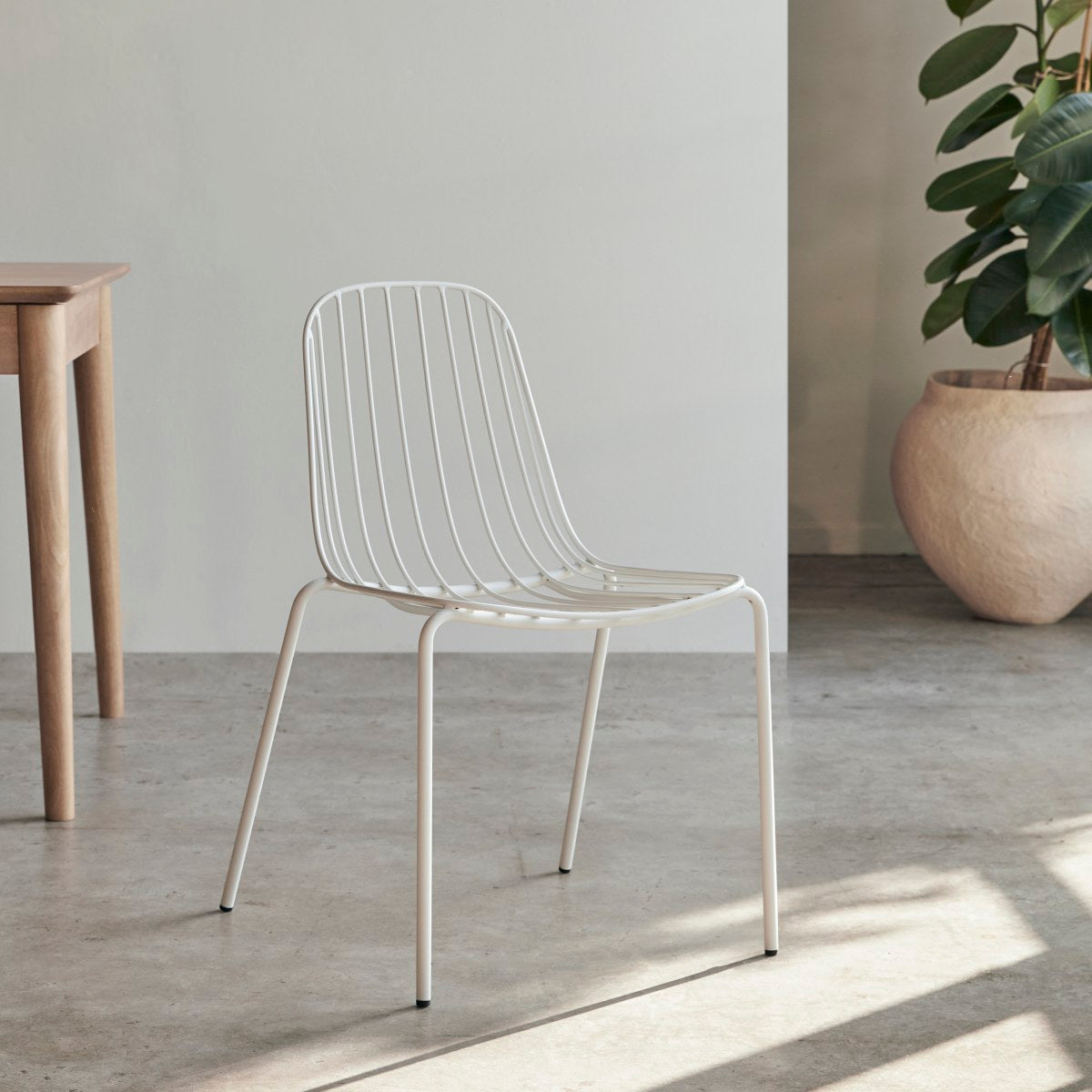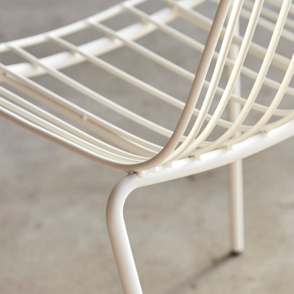 De industriële stoel Arty van wit metaal heeft zachte, afgeronde lijnen.