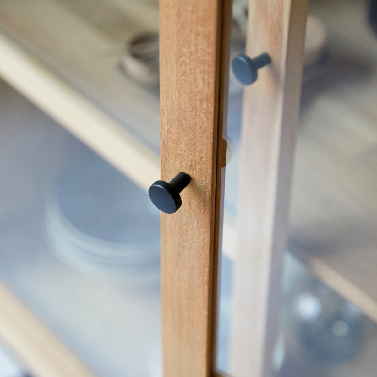 De teakhouten vitrinekast Babeth is ook verkrijgbaar in een lage uitvoering. En in een andere houtsoort: de hoge eikenhouten vitrinekast Babeth en de lage eikenhouten vitrinekast Babeth.