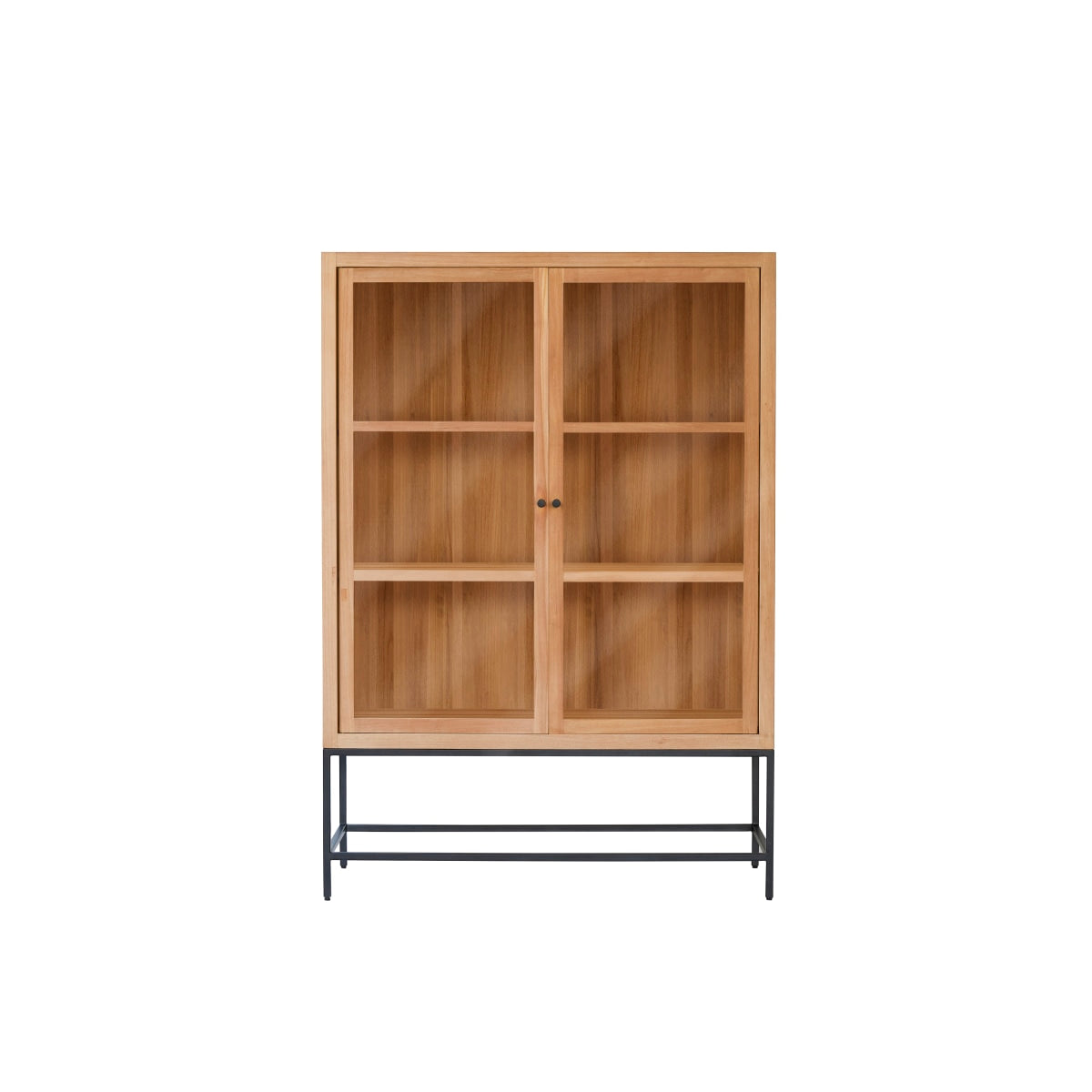 De hoge vitrinekast Babeth van massief teakhout combineert eenvoudige moderniteit met royale opbergruimte. Perfect om ons mooiste servies te presenteren en om ons tafellinnen of onze boeken op te bergen in een strakke boekenkastversie.