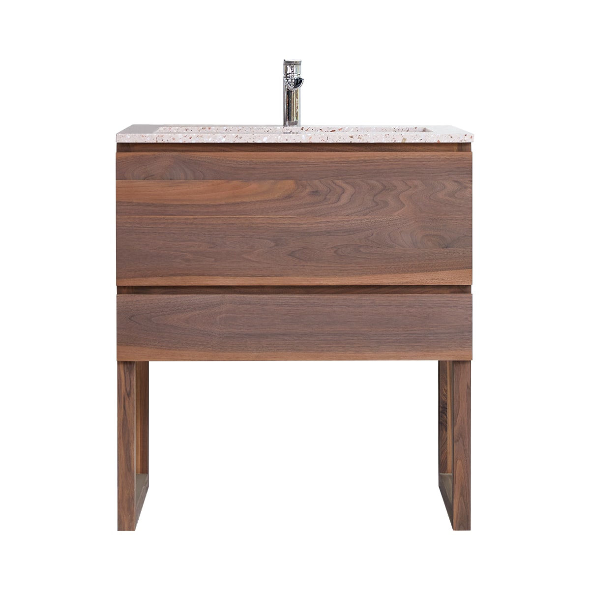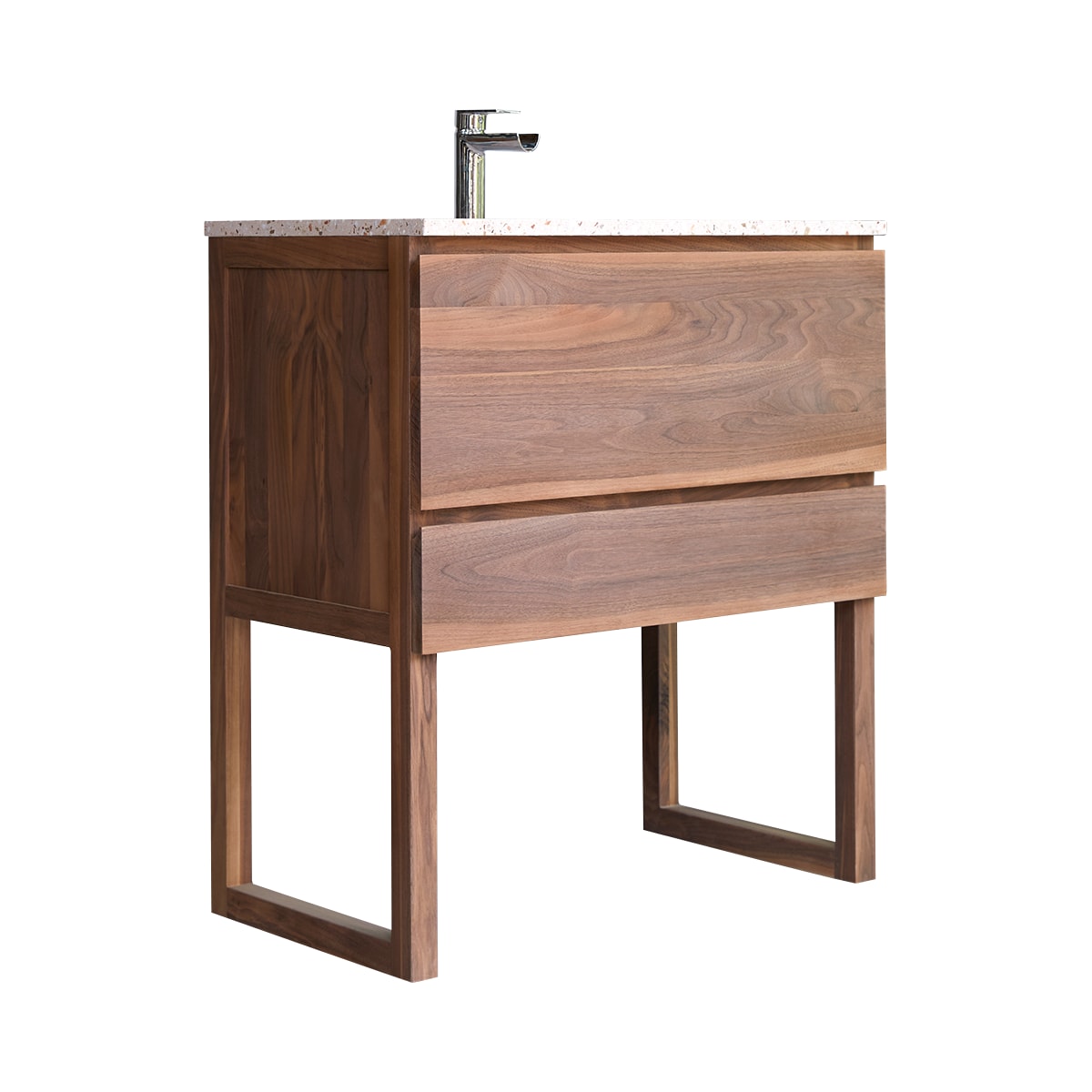 Het Edgar badkamermeubel van massief FSC®-walnoothout en terrazzo premium Pink combineert de natuurlijke elegantie van een houtsoort met prachtig uitziende zichtbare nerven met de ruime opbergcapaciteit van een goed doordacht meubel: in de grote lade kunt u handdoeken, badlakens en badmatjes opbergen, alsook grote en kleine flesjes en meer. De kleine lade is zeer handig voor alles wat u niet in de badkamer wilt laten rondslingeren. Deze is breed genoeg om in een oogopslag te kunnen zien wat erin zit. Let op de waskom van gespikkelde premium terrazzo die zeer trendy is in hedendaagse interieurs!