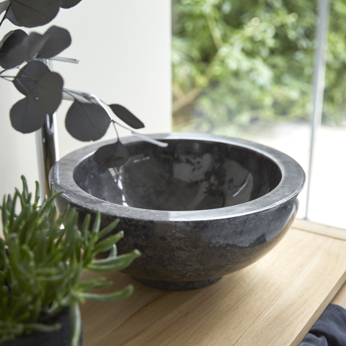 Elegante kleine, ronde marmeren wastafel Met zijn moderne en sobere stijl vindt deze wastafel makkelijk een plek in uw badkamer.