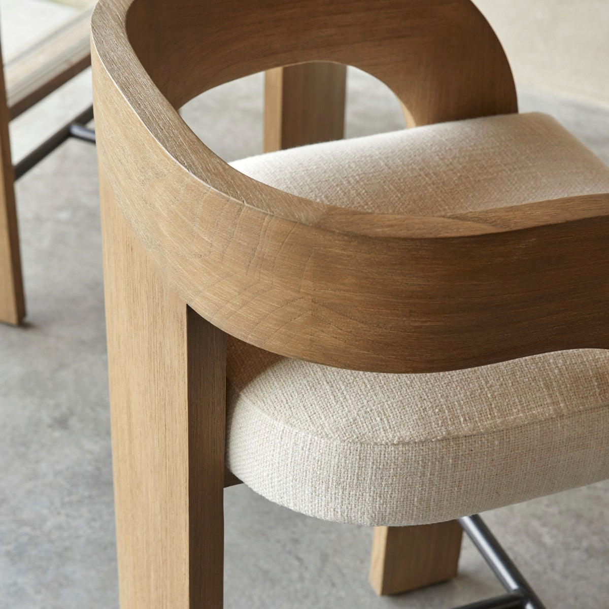Tikamoon - Barstoel in massief mindihout en ecru stof met linnenlook …
