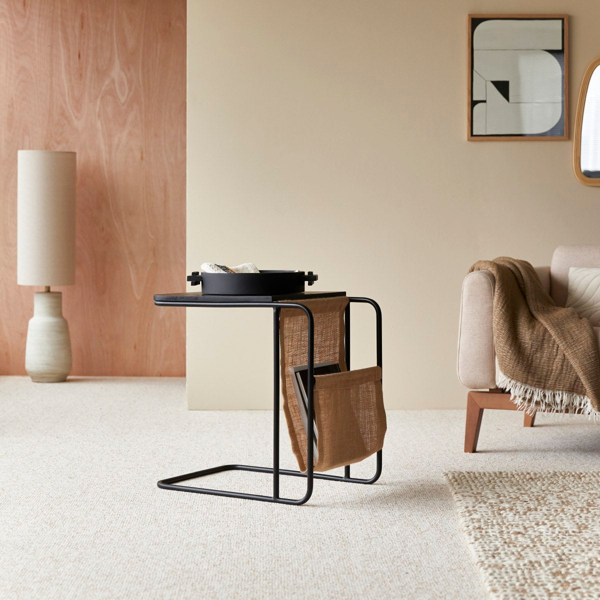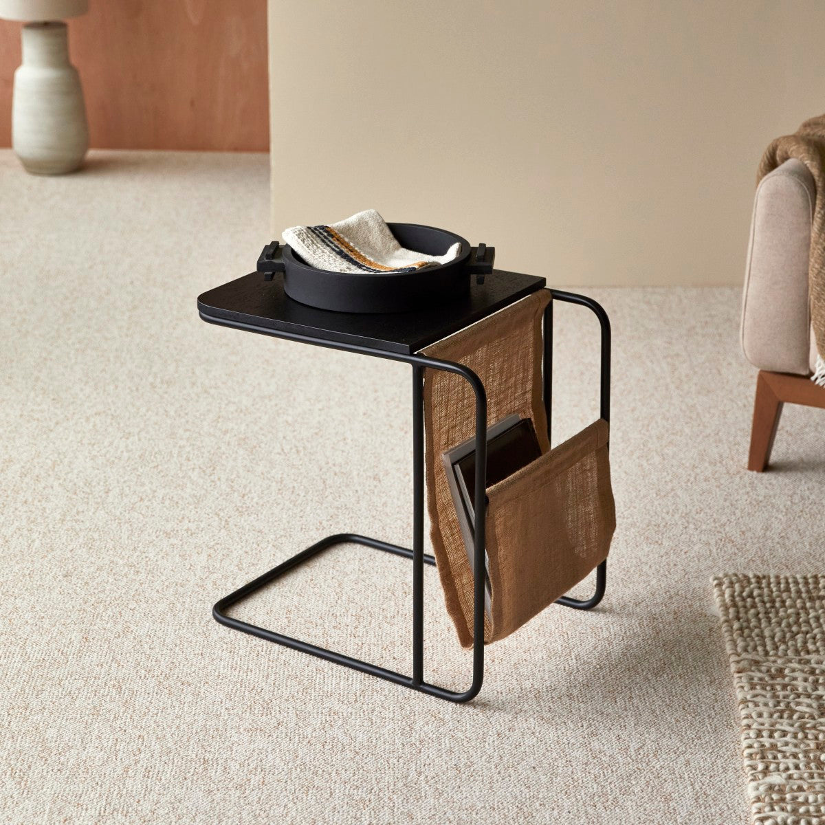 Het heeft een zijvak voor uw tijdschriften. Deze praktische bijzettafel schuift u gemakkelijk aan bij uw armleuning om alles binnen handbereik te hebben.