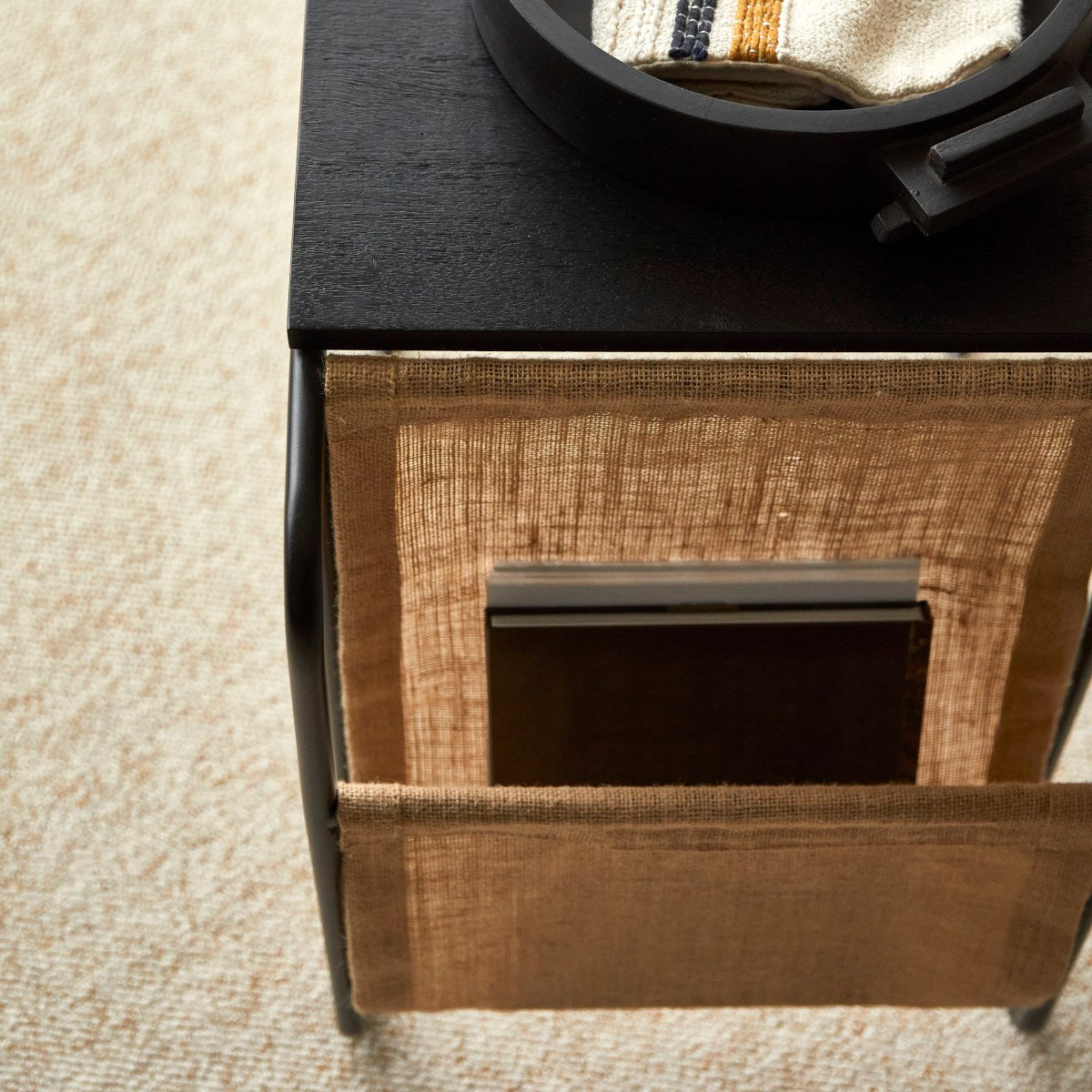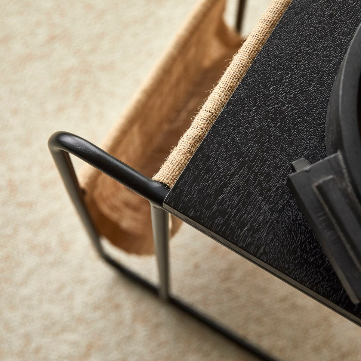 Bijzettafel van massief mangohout Fidele Dit verfijnde en elegante meubelstuk is gemaakt van 3 materialen: gevernist mangohout, metaal en vlechtwerk van jute en sisal.