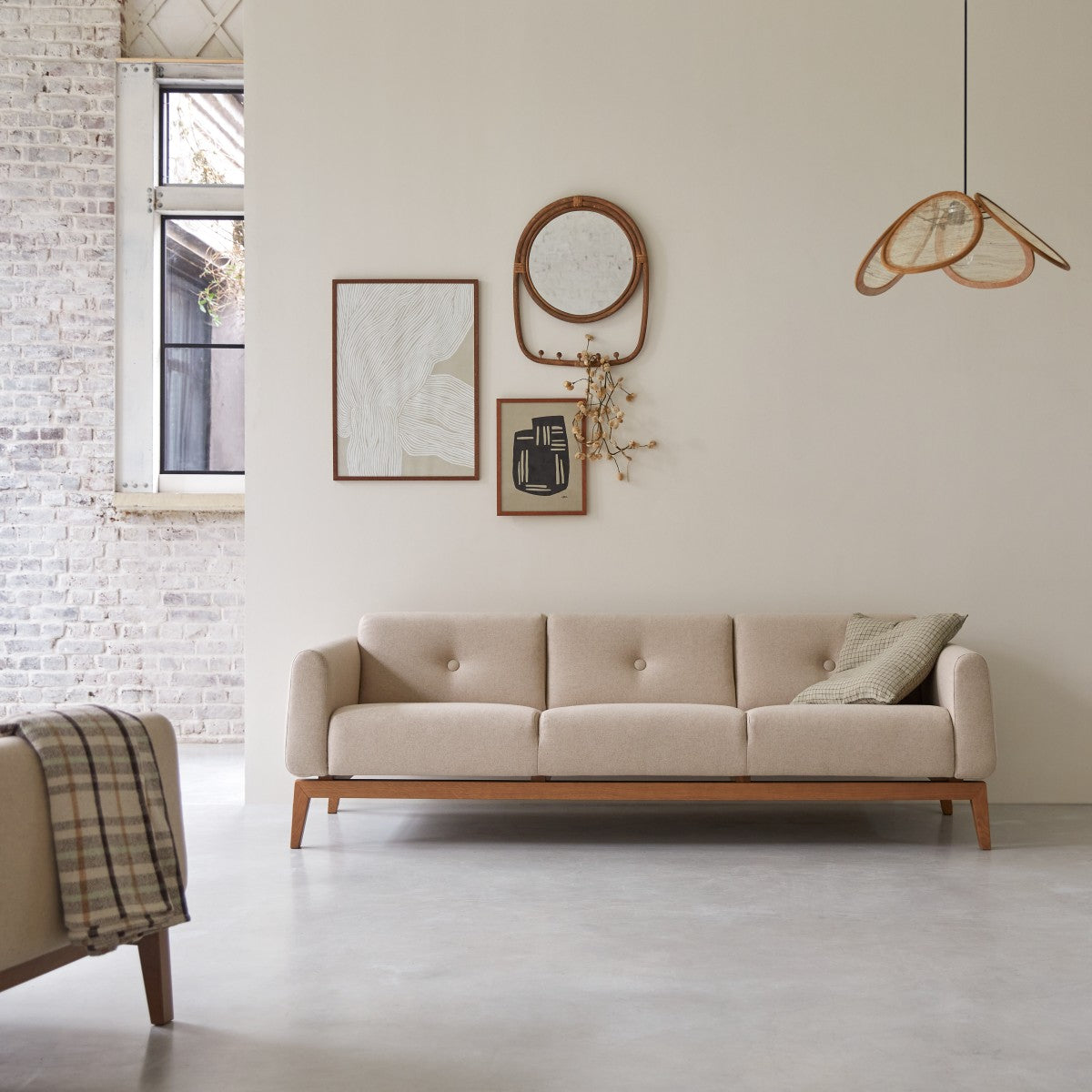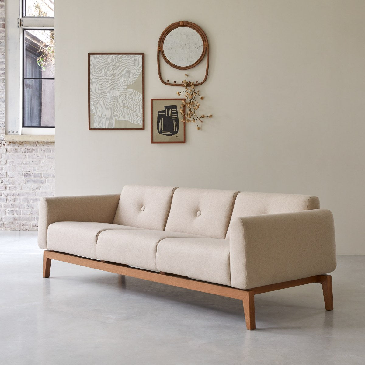 Tikamoon - Bjorn - Driezitsbank van massief eiken en ecru stof