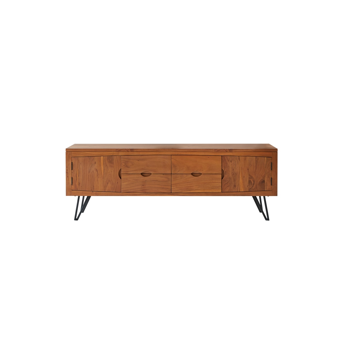Het Bonnie tv-meubel van massief acacia heeft lijnen die resoluut verankerd zijn in het hedendaagse interieurontwerp, het minimalistische accent zorgt voor een tijdloze charme... een meubel dat nooit uit de mode raakt. De metalen poten zijn zeer esthetisch.