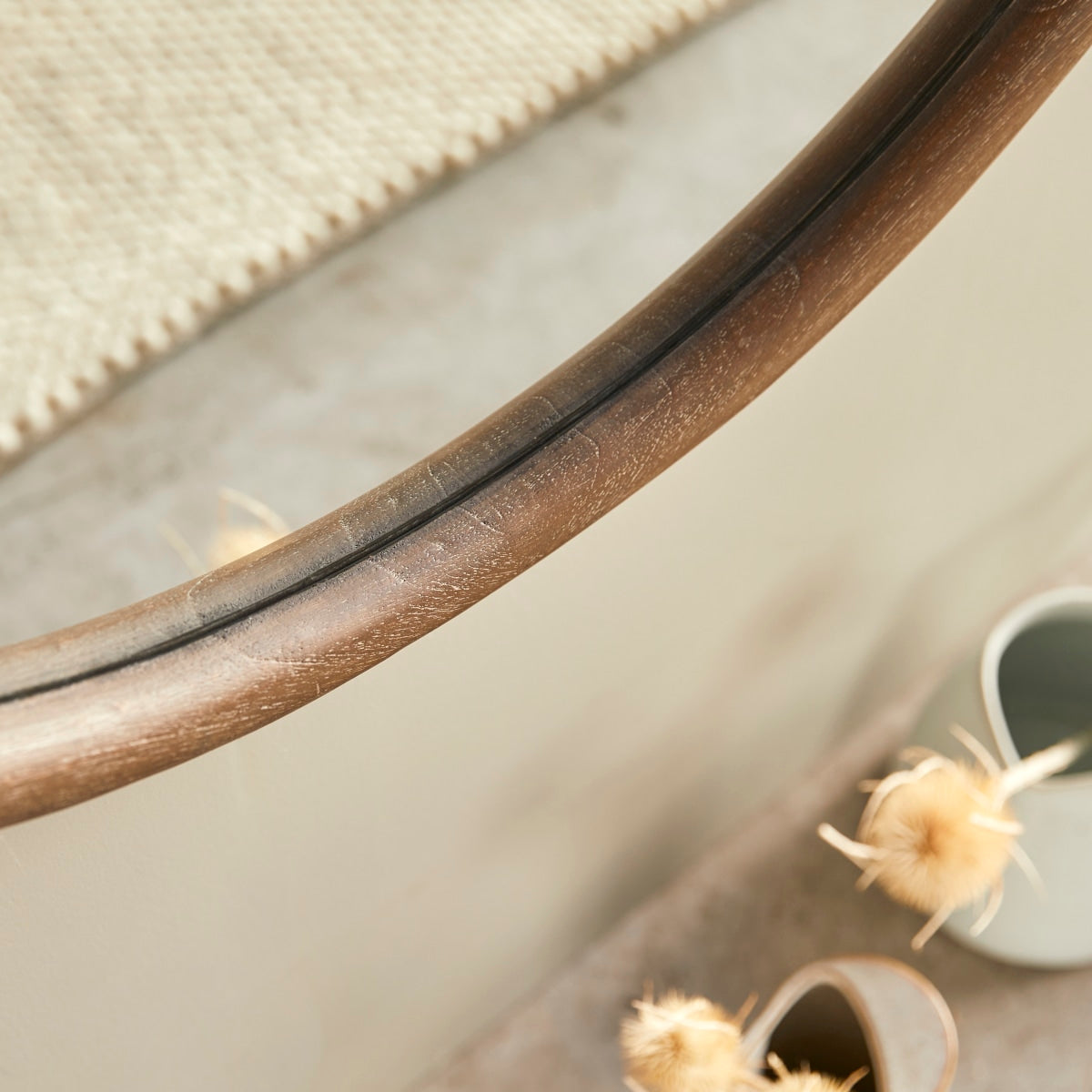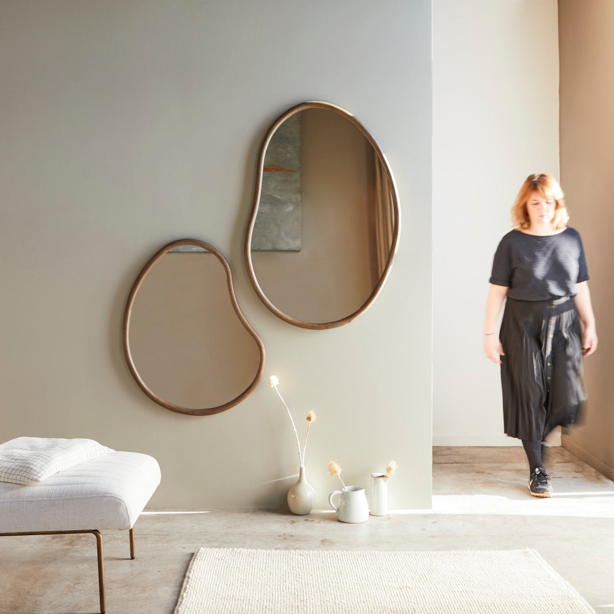 Als uniek meubelstuk in deze stijl voegt het een vleugje originaliteit toe aan een lege muur, vergroot het visueel de ruimte en geeft het persoonlijkheid aan uw interieur. In combinatie met zijn grote broer, de 100 cm massieve mindi spiegel, wordt het een kunstwerk dat elke kamer in huis elegant decoreert.