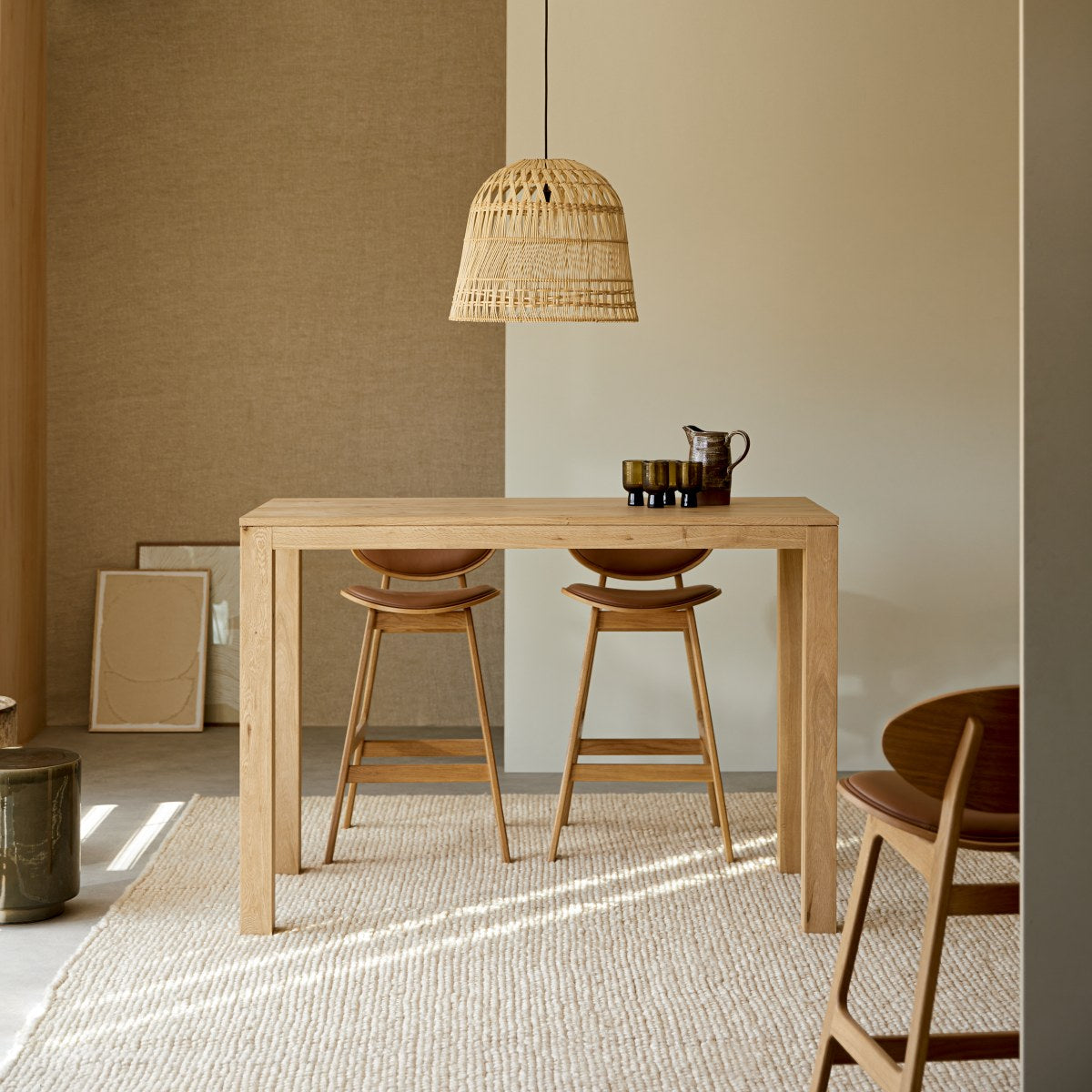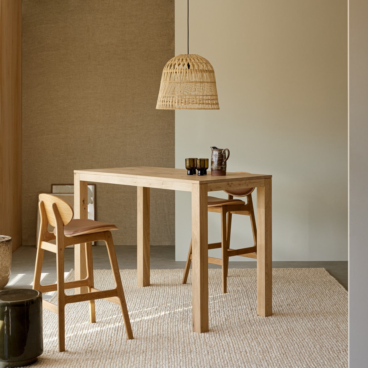 De massief eiken bartafel Eden is ideaal voor moderne keukens of keukens met een natuurlijke uitstraling en staat net zo fraai tegen een muur of als aanvulling op het centrale eiland. Hij is perfect om 2 tot 4 personen te plaatsen, heeft een prachtig sober ontwerp en een mooie honingkleur die goed in elke interieurstijl past. Opmerkelijk is de technisch geavanceerde montage van de poten, die zorgt voor een bijzonder lange levensduur. Het massieve eikenhout waarvan de Eden bartafel is gemaakt, is afkomstig uit verantwoord beheerde Europese bossen en is FSC® gecertificeerd, de garantie dat het uit duurzaam beheerde bossen komt. Het hout heeft een geoliede afwerking die het niet alleen voedt, maar ook beschermt tegen slijtage door dagelijks gebruik en het onderhoudsvriendelijker maakt.