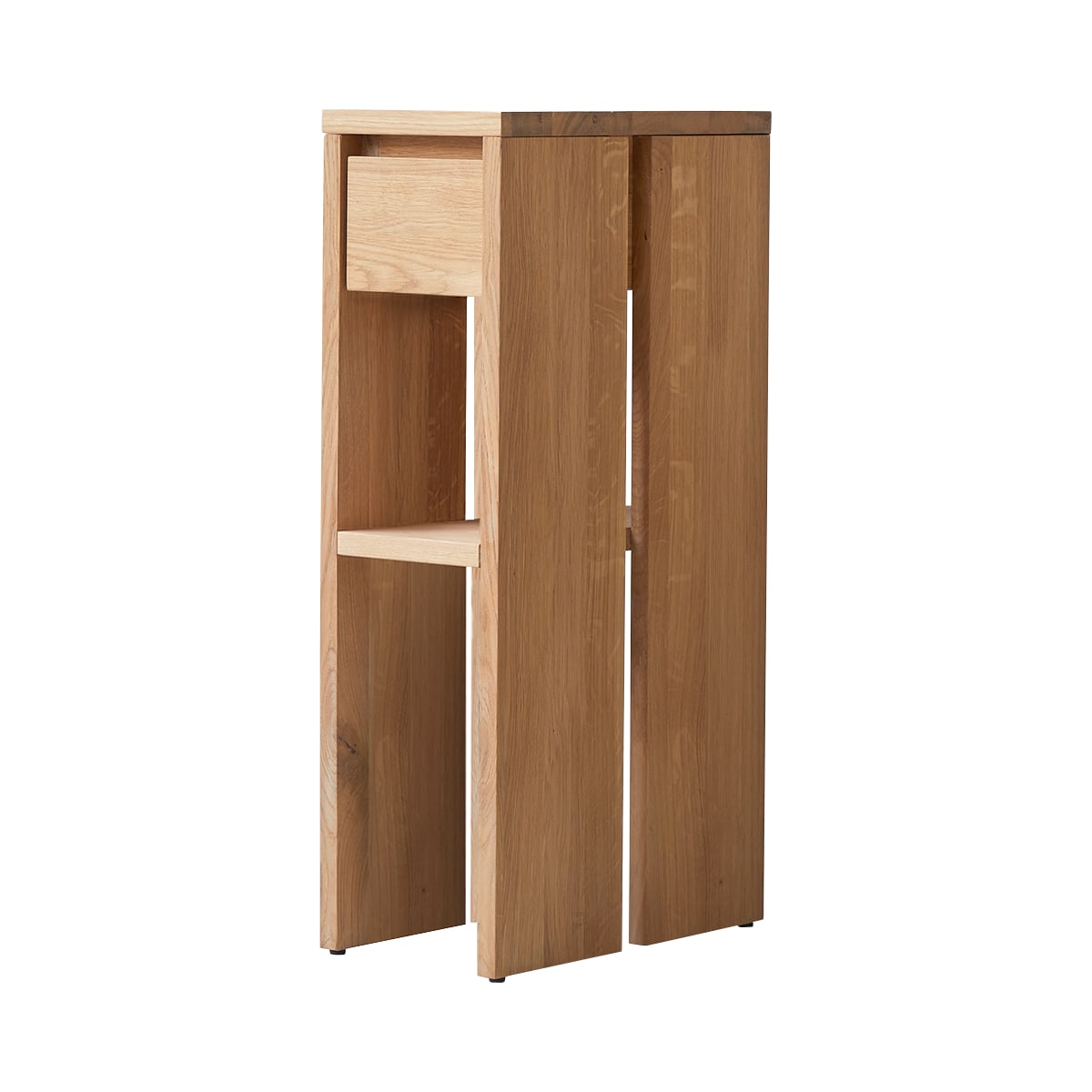 Design en elegantie, de trefwoorden die het massief eiken nachtkastje Eden beschrijven! Wij houden van de blondheid van het geoliede hout (FSC® gecertificeerd (de garantie van hout uit duurzaam beheerde bossen) en de originaliteit van de lijn…