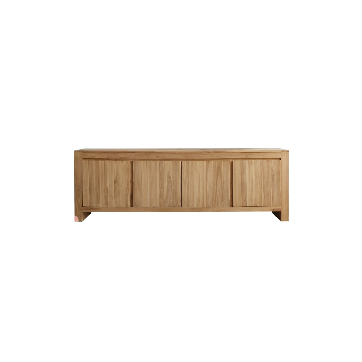 En gepatineerd door de jaren heen wordt het alsmaar mooier... Dit praktische meubel biedt veel opbergruimte met 4 compartimenten met greeploze deuren, voor een verfijnd, elegant design. Het massieve hout heeft een mooie lichte kleur en de subtiele houtnerven geven karakter aan het model. Het teakhouten dressoir Eden kan overal in huis worden geplaatst: in de eetkamer of in de keuken voor servies en tafellinnen, in de woonkamer om alles op te bergen wat te maken heeft met allerhande accessoires of multimedia-accessoires, in de slaapkamer voor kleding of beddengoed …