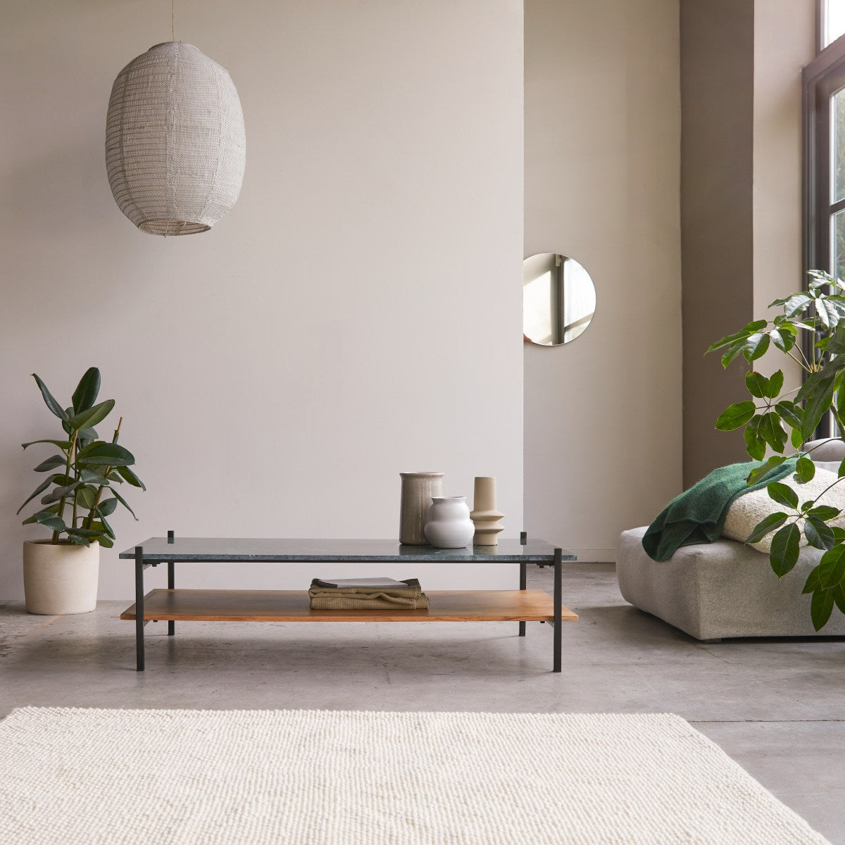 De Edit salontafel van massief acacia en marmer is in alle opzichten perfect: sober, met perfecte harmonie van mooie materialen en kleuren. Het marmeren blad geeft het veel charme, het acacia onderblad verzacht het geheel...