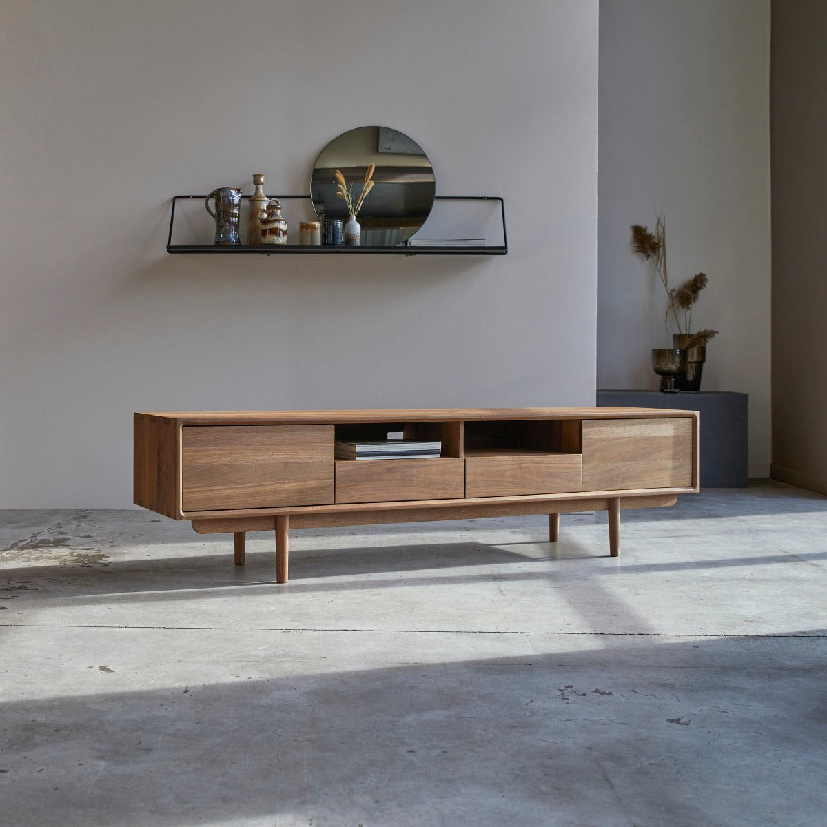 Voor een heel eigentijds accent kunt u het Ellie tv-meubel van notenhout ook als laag meubel gebruiken... Aarzel niet om het te combineren met andere meubelen van notenhout uit onze Esmée collectie of onze Jonak collectie voor een harmonieuze omgeving.