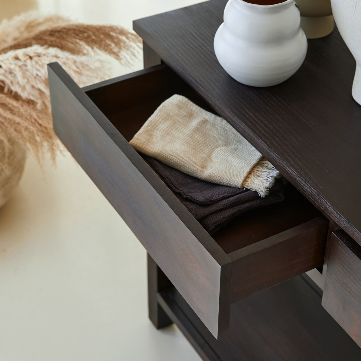 De wengé bijzettafel van massief mahonie 120 Eva Biti voelt zich overal thuis! In de eetkamer, woonkamer, hal of werkkamer... voor decoratieve voorwerpen, planten of boeken.