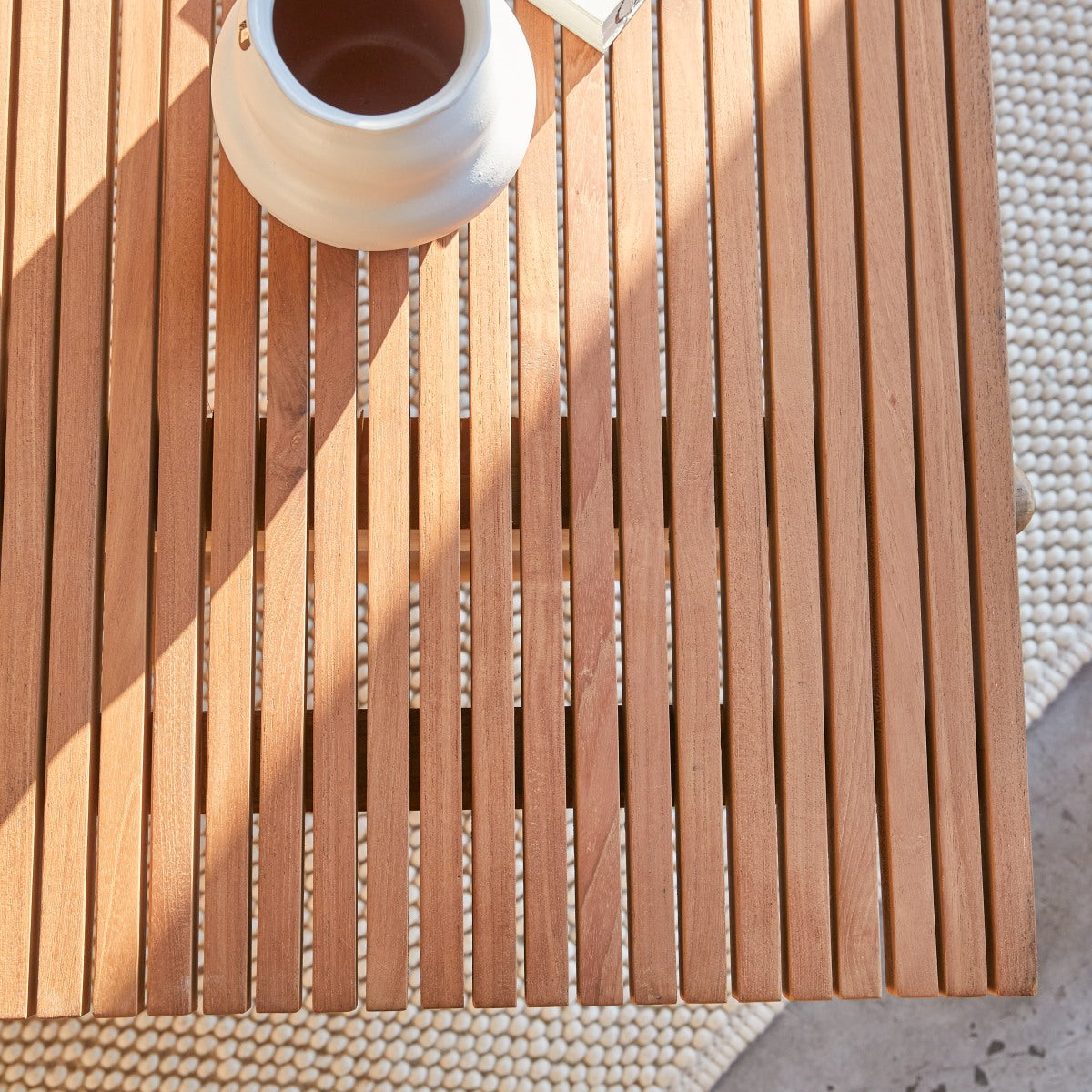 De Fado massief teakhouten salontafel is de perfecte aanvulling op uw woonkamer en kan bij mooi weer ook op het terras worden geplaatst: de grenzen tussen binnen en buiten vervagen met de In & Out trend, die de voorkeur geeft aan meubels die ontworpen zijn om binnen en buiten gebruikt te kunnen worden.