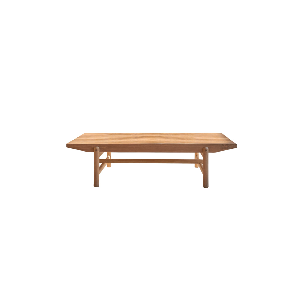 Een topmeubel dat topprestaties combineert met eigentijds design: De massief teakhouten salontafel Fado biedt een prachtige soberheid van lijnen, een mooi rond en ruim blad van latten, ideaal voor voorwerpen die de neiging zouden hebben weg te rollen of het uitstallen van enkele snuisterijen... en een onderstel dat zo is ontworpen dat het het geheel optisch verlicht.