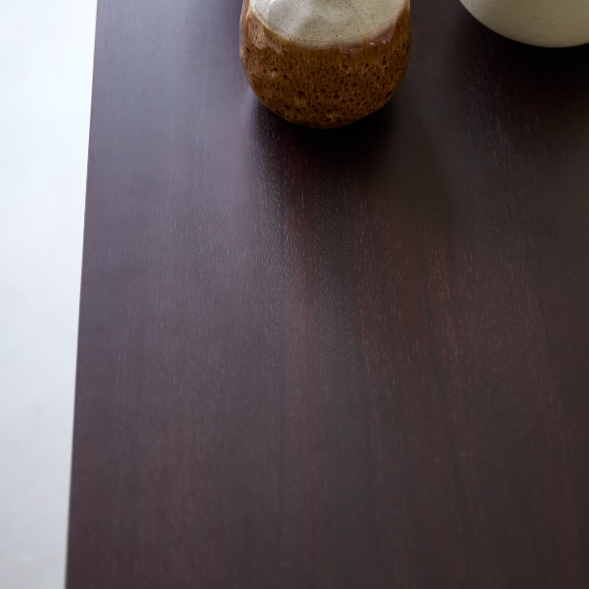 De voorkant is bewerkt met fijn houtsnijwerk met atypische en etnische vormen die het model super authentiek maken. Een prachtig stuk met een unieke, exotische en originele uitstraling. De wengékleur creëert een een warme en exotisch sfeer in uw kamer.