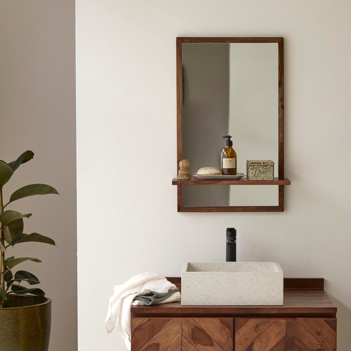 Deze sobere, praktische en esthetische Galyno sheesham spiegel van massief palissanderhout geeft badkamers en doucheruimtes een prachtige natuurlijke touch!