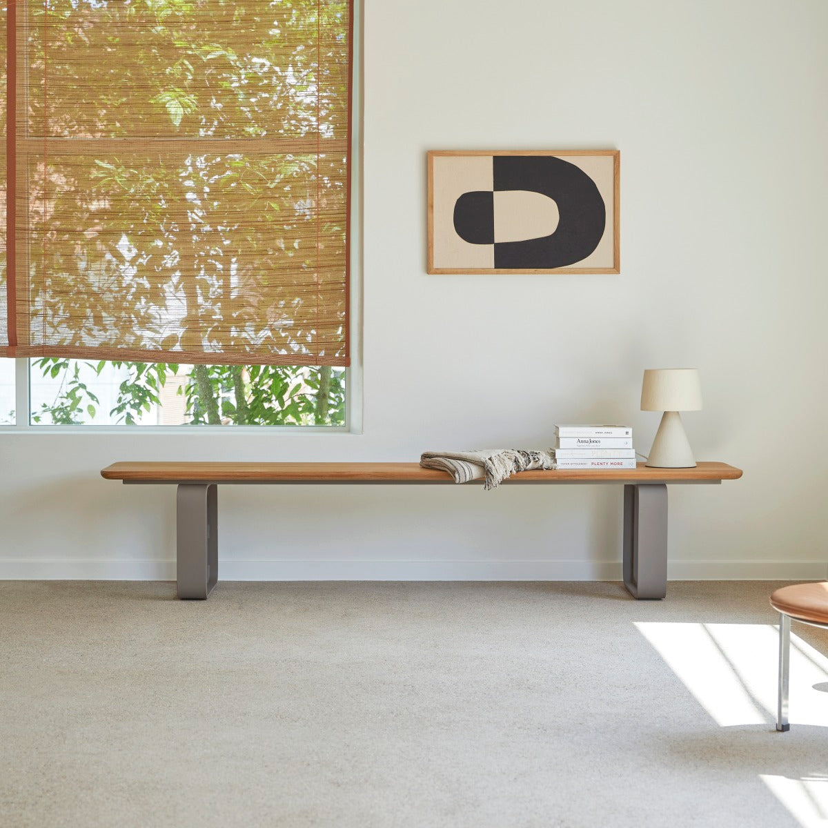 Pluspunt: De Harper-bank van massief teakhout en aluminium staat mooi in de eetkamer of keuken... In overeenstemming met de in- en outdoor-trend is het stuk ook geschikt voor buitengebruik en past het goed bij onze meubels in hedendaagse stijl.