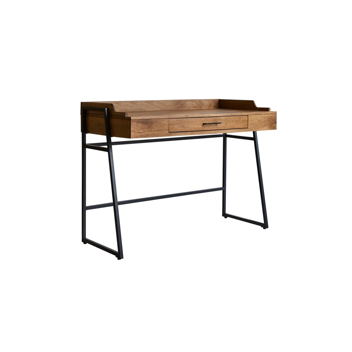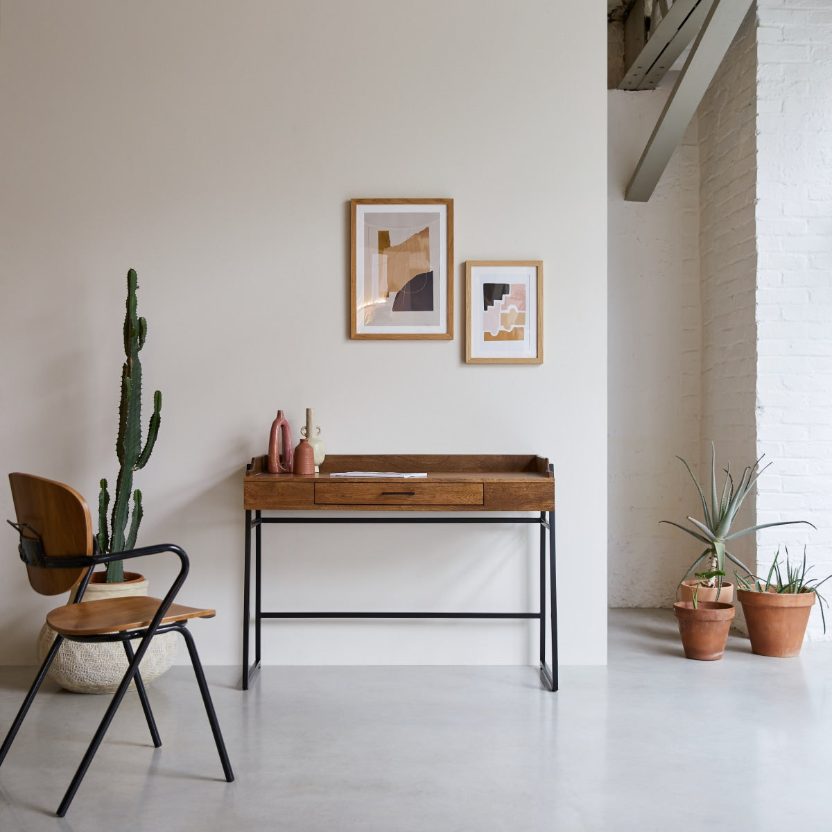 Het Hedda bureau van massief mangohout en metaal... als een verlangen om te reizen zonder uw huis te verlaten. Wij houden van de luchtigheid van het exotisch geïnspireerde ontwerp, de gelakte afwerking die de nerven van het massieve hout accentueert en de mooie verhoudingen. Ideaal in de slaapkamer om een kleine werkplek te creëren of om te gebruiken als elegante kaptafel. Het Hedda bureau van massief mangohout en metaal speelt graag met contrasterende materialen!
