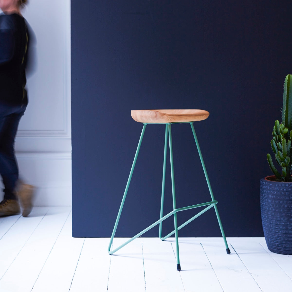 De hoge Mari kruk is zowel luchtig als stevig en heeft eigentijdse zuivere lijnen.
