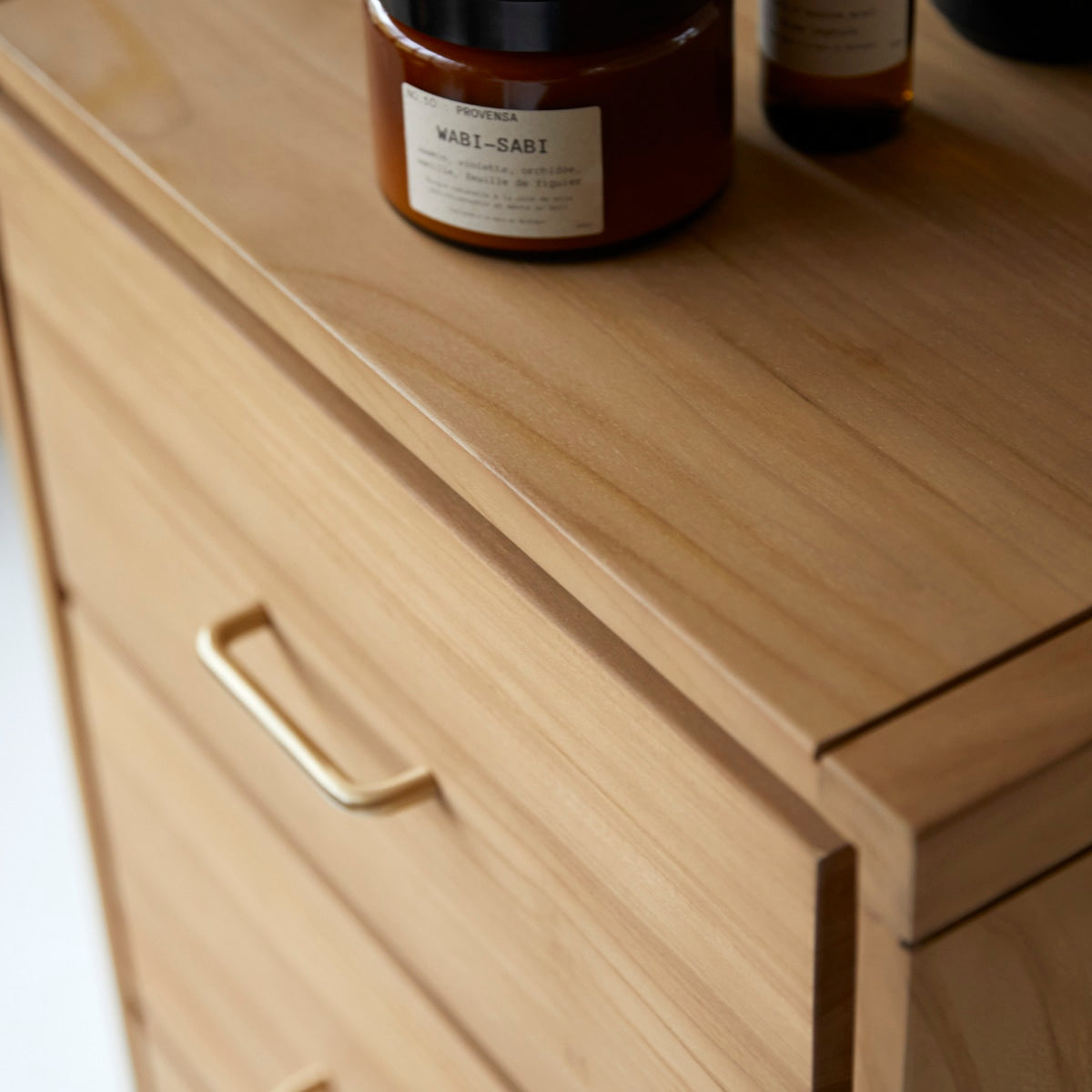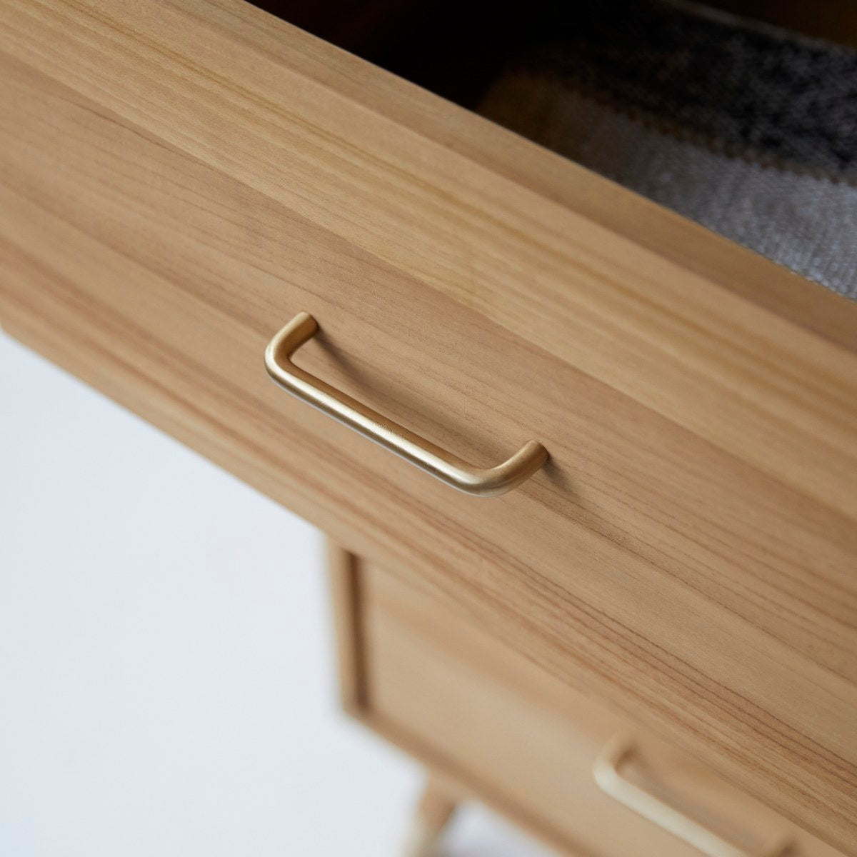 Geïnspireerd door het Scandinavische design voor een ladekast die een natuurlijk en toch chique vintage accent toevoegt aan uw kamer. U zult dol zijn op de schuine messing en houten poten die dit meubel zijn oorspronkelijke karakter geven. U zult ook de kwaliteit van de afwerking en de elegantie van het onbewerkte hout waarderen.