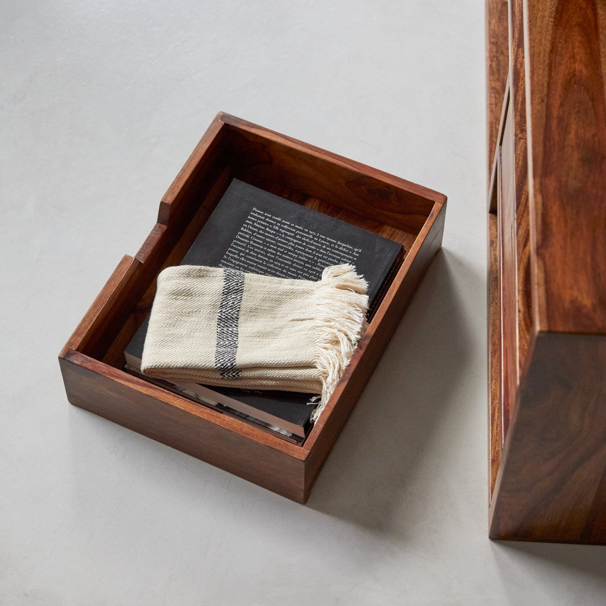 De modulaire collectie Kwarto van palissander is ontworpen voor elke kamer in huis. Deze identieke kubussen kunnen worden aangepast aan uw wensen: tv-meubel, badkamermeubel, opbergkolom ...