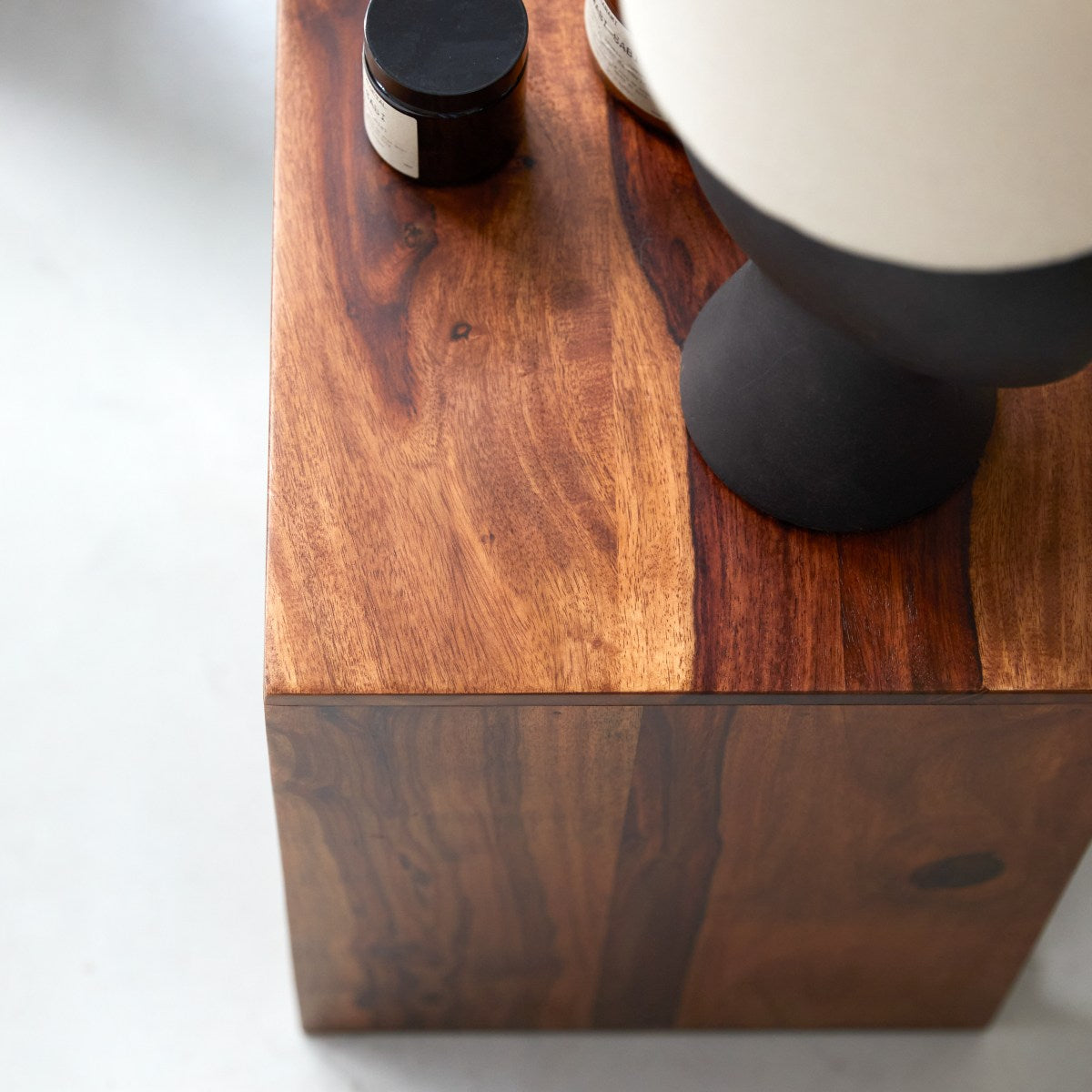Kubus van palissander met eenvoudige en moderne lijnen. Deze massief houten module kan worden gebruikt als banktafel in de woonkamer, als aanvulling op de modulaire Kwarto collectie of als eenvoudig opbergelement. Het bestaat uit één vak. De modulaire Kwarto collectie van massief palissander is ontworpen voor alle kamers in het huis. Deze identieke kubussen kunnen worden aangepast aan uw wensen: salontafel, tv-meubel, opbergkasten, ze passen zich aan uw behoeften aan.