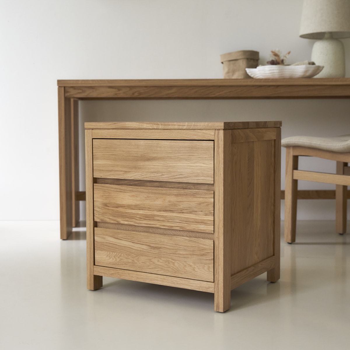 Het Eden massief eiken ladenblok: een veelzijdig meubel voor de slaapkamer, studeerkamer of woonkamer... Verstopt onder het massief eiken Eden bureau creëert dit ladeblok een elegante ruimte om te werken of te ontspannen. De eenvoud van het ontwerp en de lichte kleur van het hout maken hem gemakkelijk te combineren met elke interieurstijl.