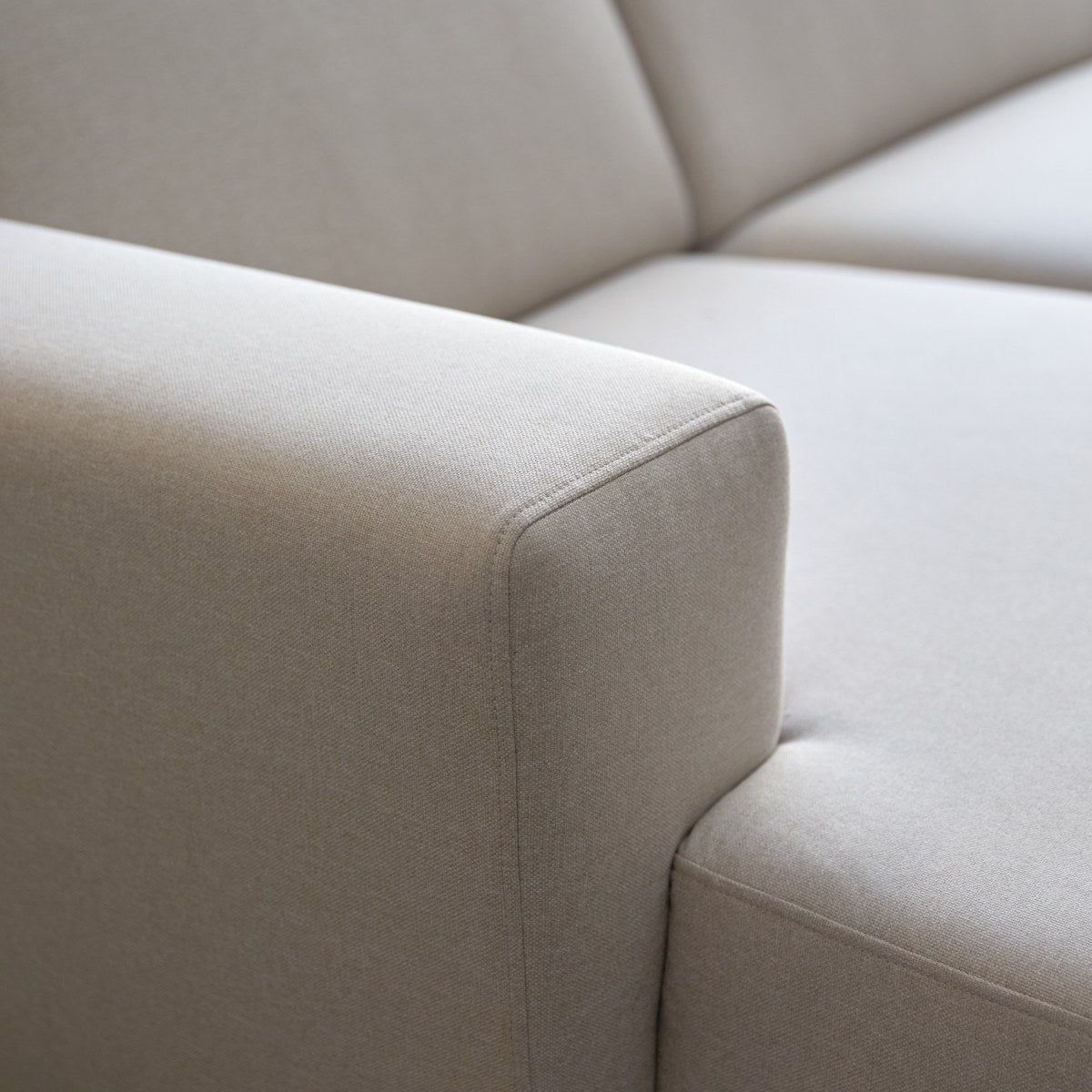 De hoekbank Lars is ook verkrijgbaar met een hoek rechts. Hij is ook beschikbaar met een lange hoekbank met linkse en rechtse hoek. Ontdek ook onze bank Lars in ecru stof en de bijpassende voetenbank die zo nodig een zitplaats wordt.