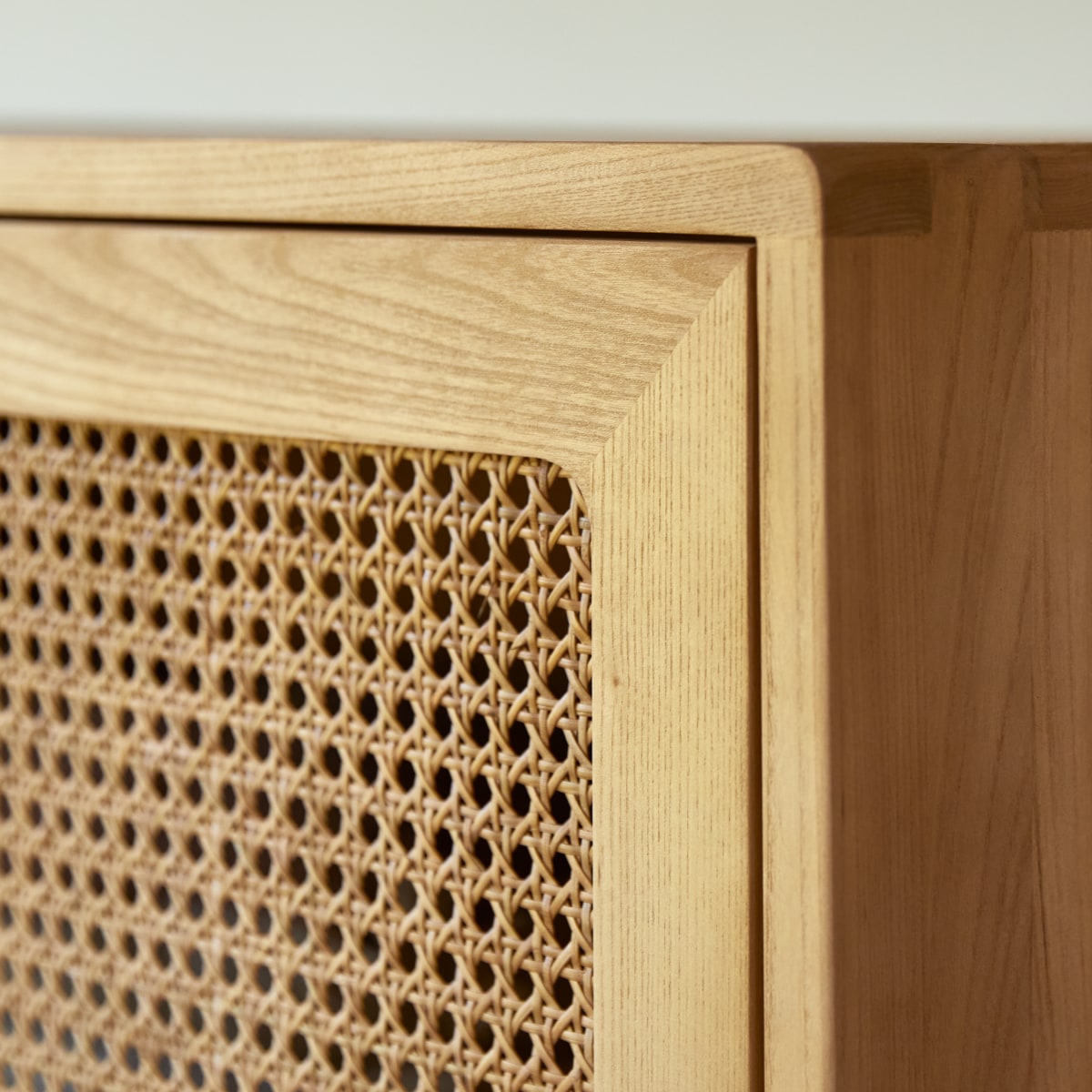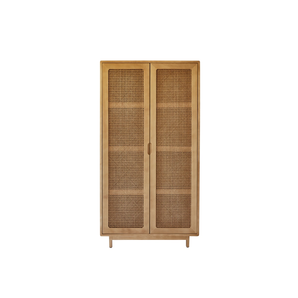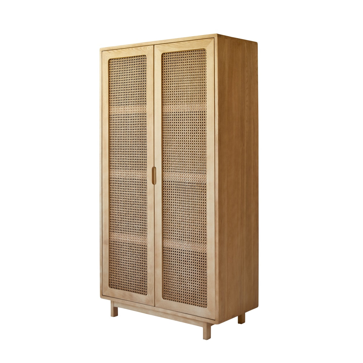 Kleding opbergen in de Luis-kast van massief iepenhout en rotan vlechtwerk is als schatzoeken. De deuren laten een glimp van de inhoud zien, ideaal om duizend avonturen en scenario's te bedenken. Ook prachtig in een kamer met accenten van verre oorden. En als uw kind groter wordt, zal het de exotische kant waarderen van een kast met mooie sobere lijnen.