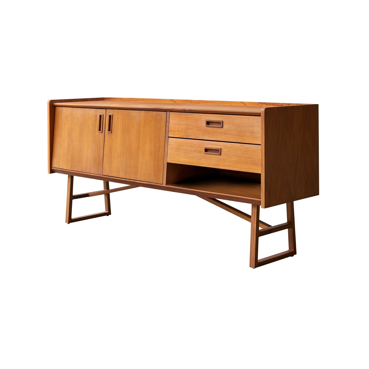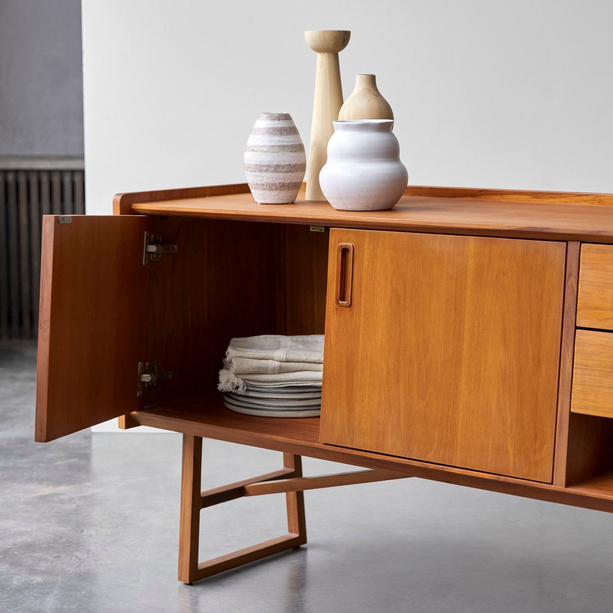 Het Marcus tv-meubel is de perfecte combinatie van natuurlijk teakhout met subtiele gouden tinten en een Scandinavisch geïnspireerd ontwerp!