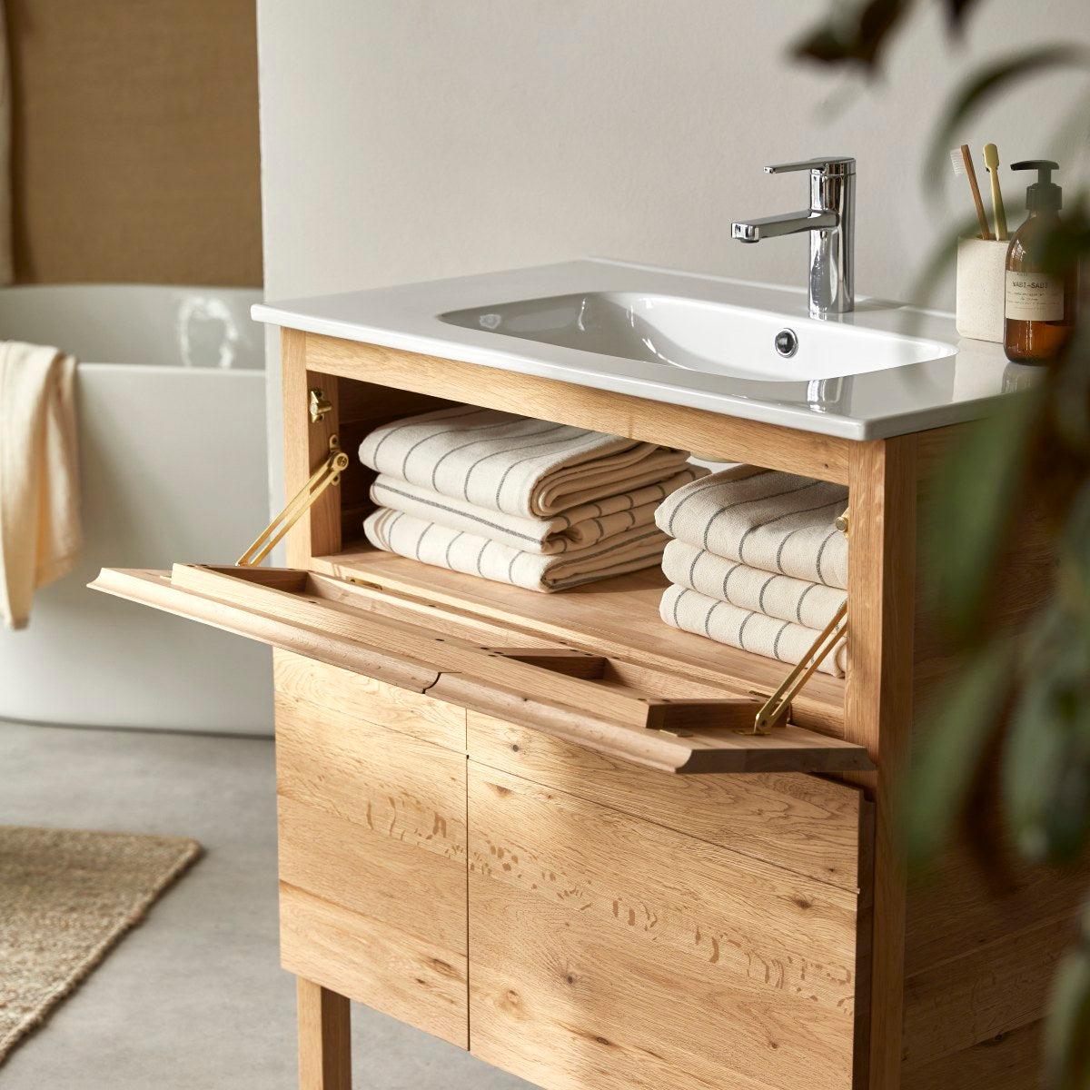 Ons meubel maakt deel uit van de Easy collectie: een assortiment eikenhouten meubels voor de badkamer zoals badmeubels, kolommeubels en spiegels, die door onze designers ontworpen zijn. Deze meubels van getextureerd eikenhout brengen charme en authenticiteit in uw interieur.