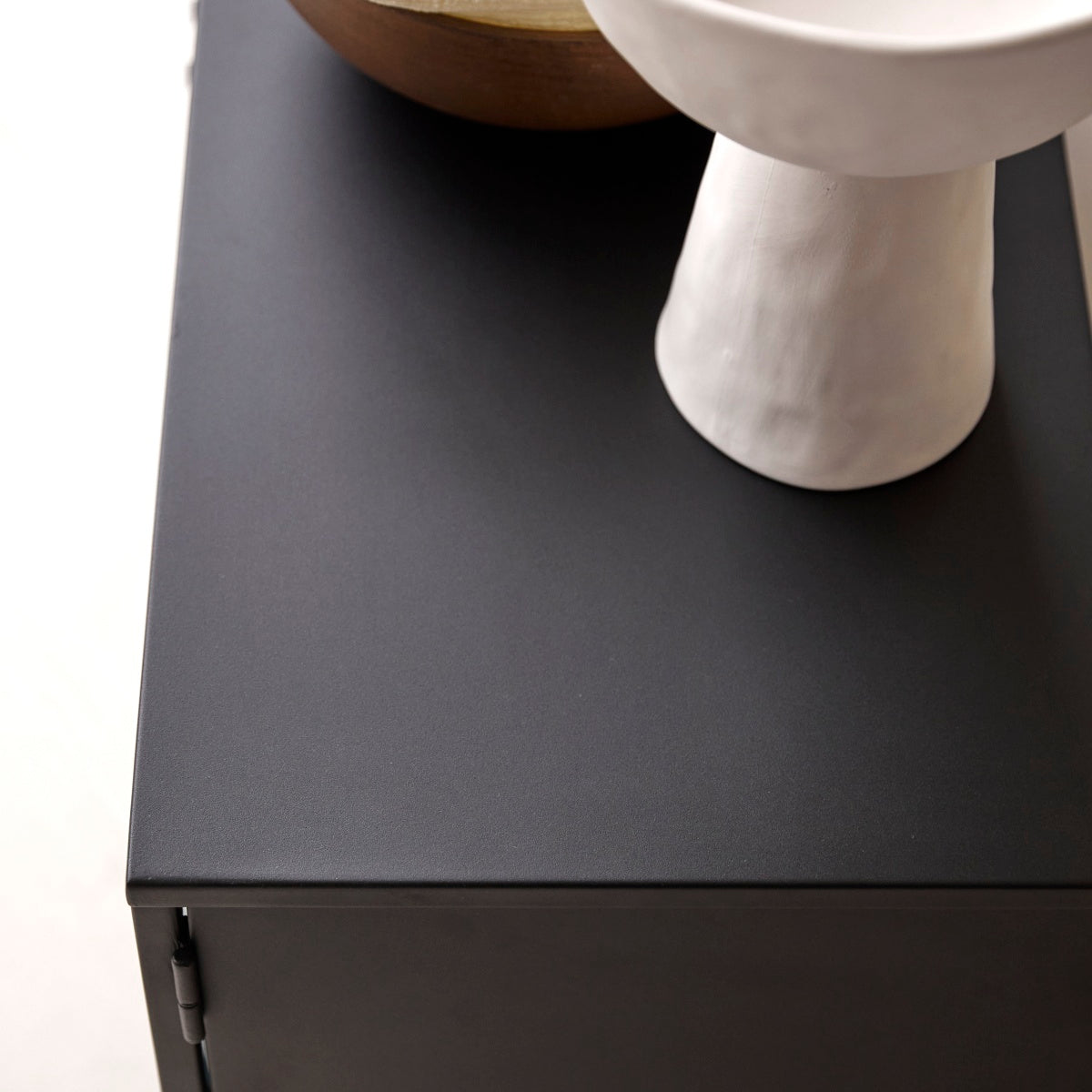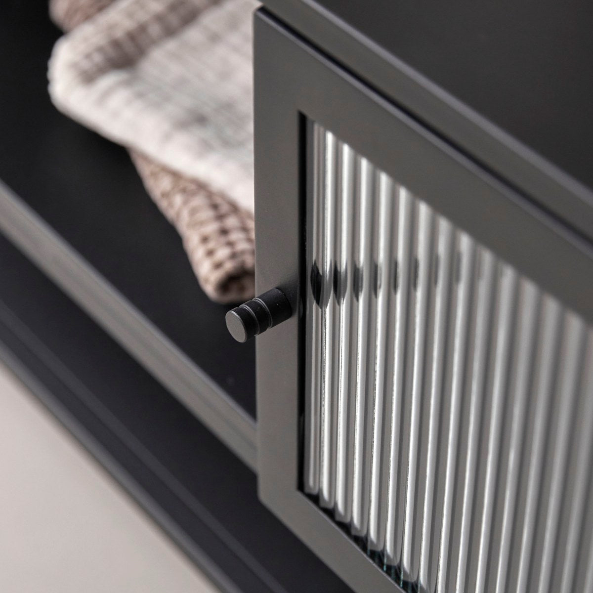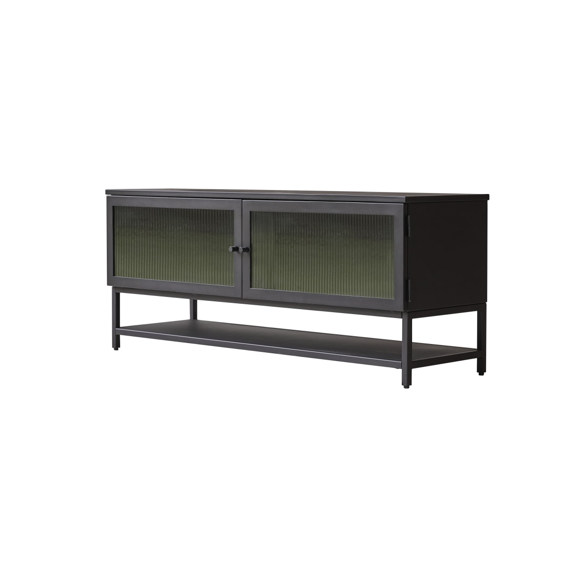 Metalen tv-meubel Antonin biedt net dat vleugje verfijning dat de sfeer in elk vertrek direct verbetert! Dit op industriële esthetiek geïnspireerde meubel is een briljante combinatie van twee contrasterende materialen: glad metaal met een poedercoating voor bescherming van het authentieke uiterlijk en ondoorzichtig gehard glas dat meer verbergt dan onthult.