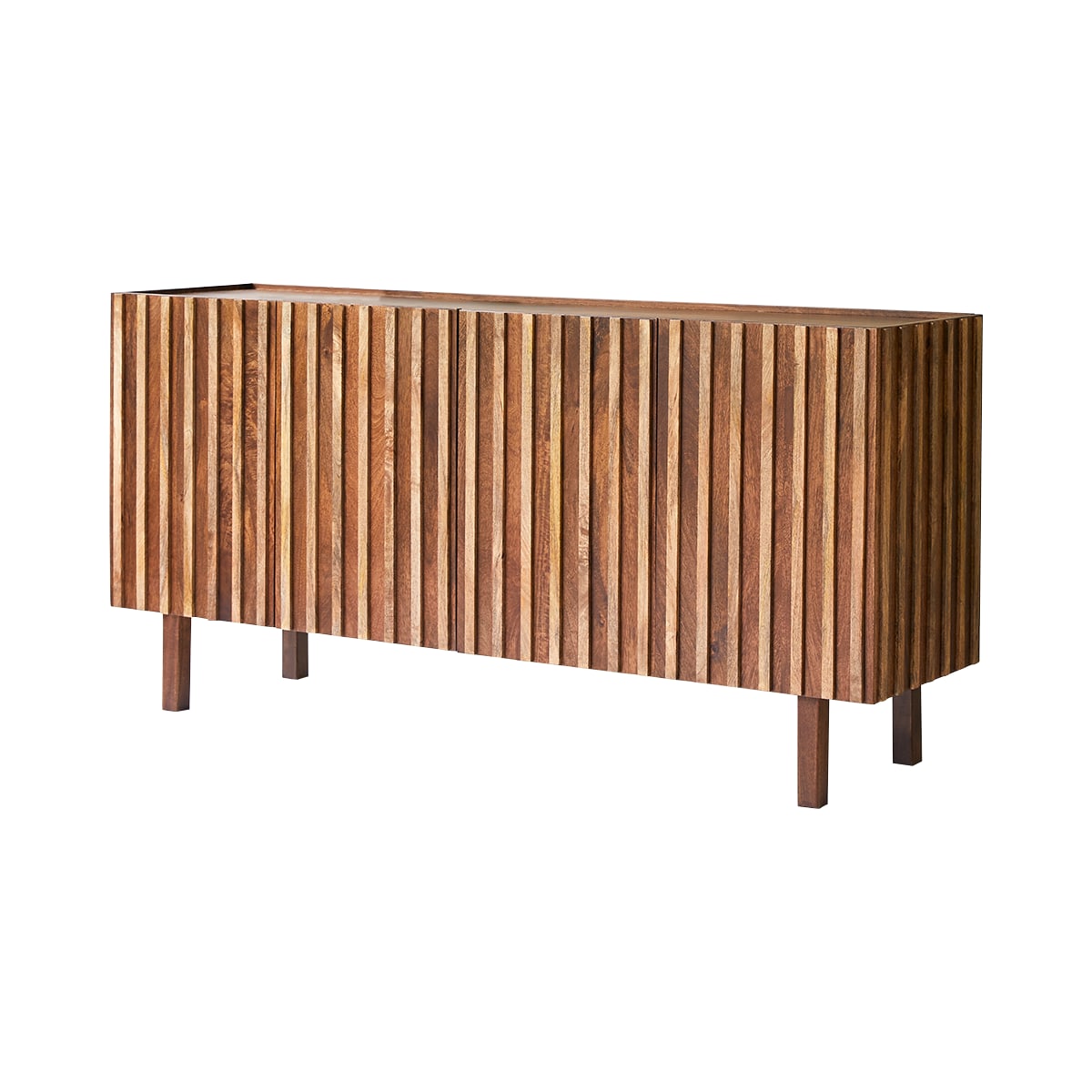 Het buffet Milo van massief mangohout scoort met zijn expressieve karakter. Met het kenmerkende lamellenontwerp van zijn voorkant trekt het alle aandacht.En dankzij zijn interessante look in etnische stijl zal het snel een centraal element worden in uw eetkamer! Opmerkelijk zijn ook de Z-vormige versteviging van zijn deuren en de royale opbergruimte. Dit buffet is perfect voor servies en tafellinnen, maar vindt ook een plek in elke andere kamer van uw huis. Ook de aantrekkelijke lakafwerking overtuigt.