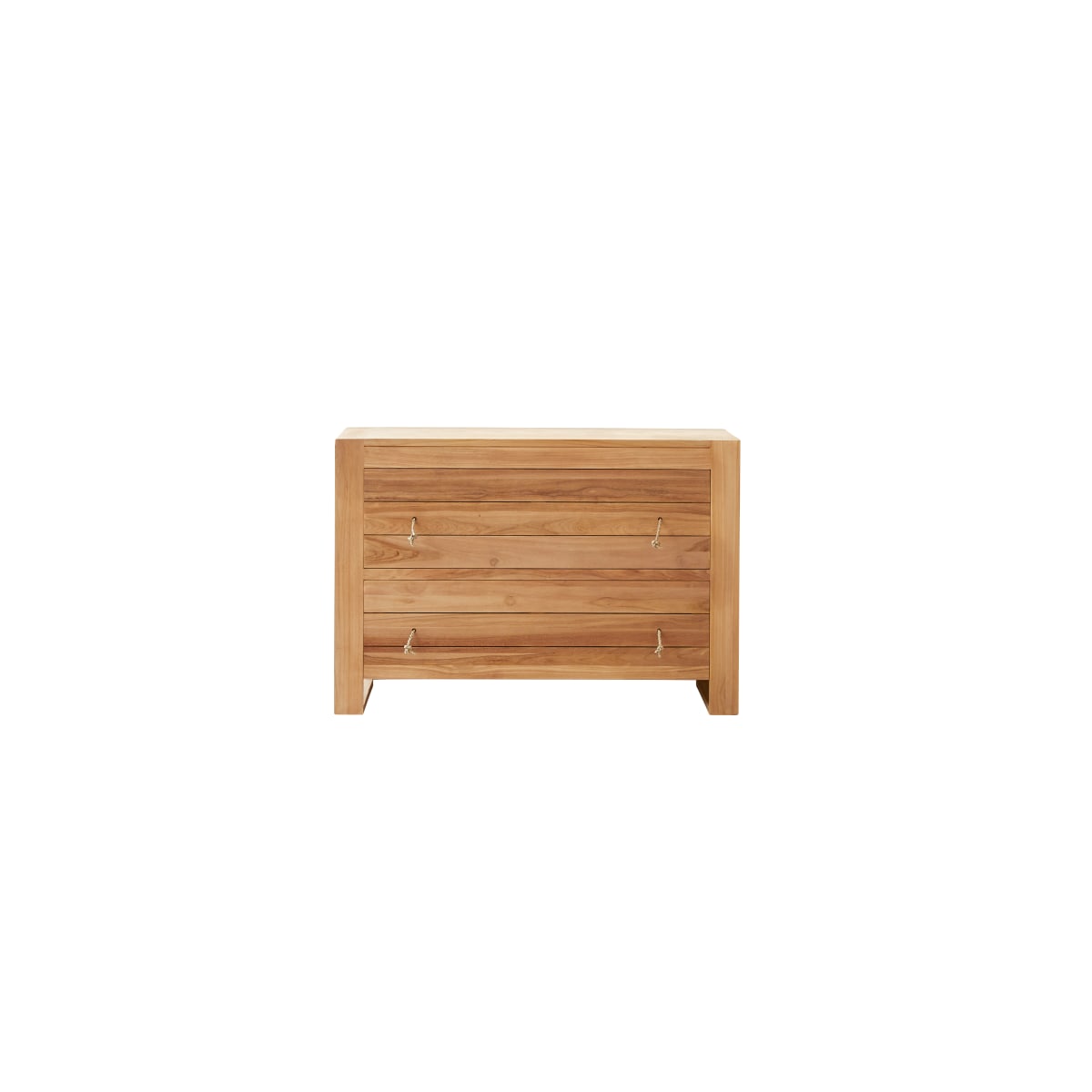 Ladekast van massief teakhouten latten met FSC-certificaat®. Zeer praktisch, met 2 laden, voor al uw textiel. Perfect in een slaapkamer; een meubel van hoge kwaliteit gewaardeerd voor de eenvoud en de vorm. Dit houten opbergmeubel, geïnspireerd door een hedendaags en sober design, zal samen met het bed en het Minimalys nachtkastje charme en warmte verzekeren in huis. Dit product maakt deel uit van de Minimalys-collectie: de kwaliteit en stijl die u gewend bent van Tikamoon!