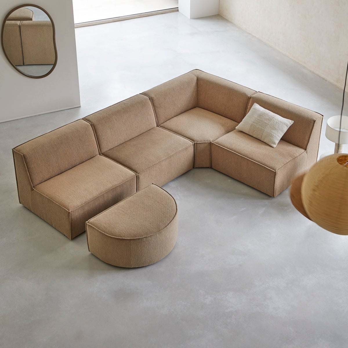 Tikamoon - Modulaire 5|6-zits hoekbank Dario in camelkleurige stof