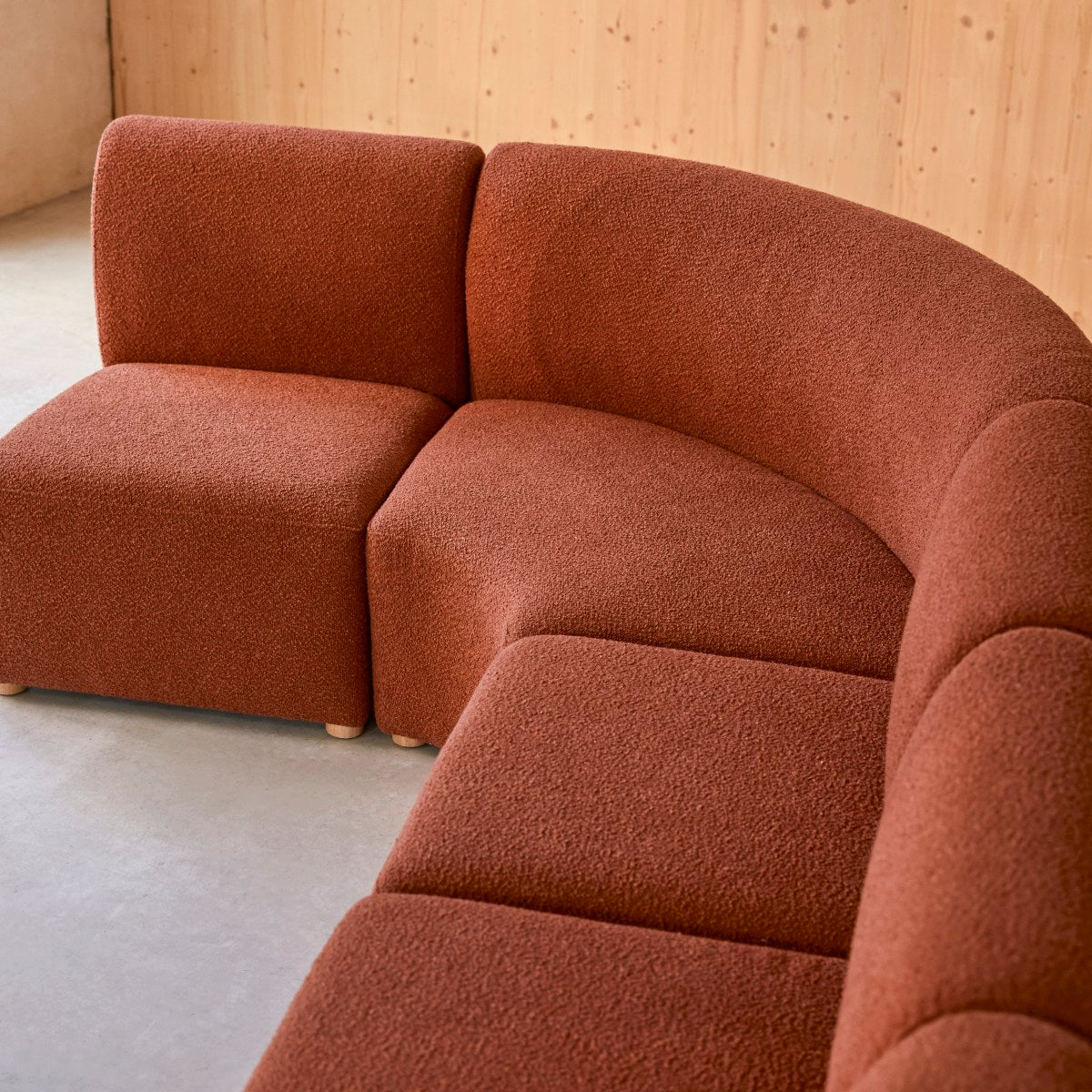 Bekijk de modulaire hoekfauteuil Swann van massief acaciahout en terracotta stof. U kunt hem gebruiken als middelpunt met een look die zowel eigentijds als sober genoeg is om een tijdloos meubelstuk te worden... of u kunt hem combineren met de fauteuils uit dezelfde collectie om een woonkamer te creëren die zich aanpast aan uw ruimte, uw behoeften, en zij op elk gewenst moment te veranderen