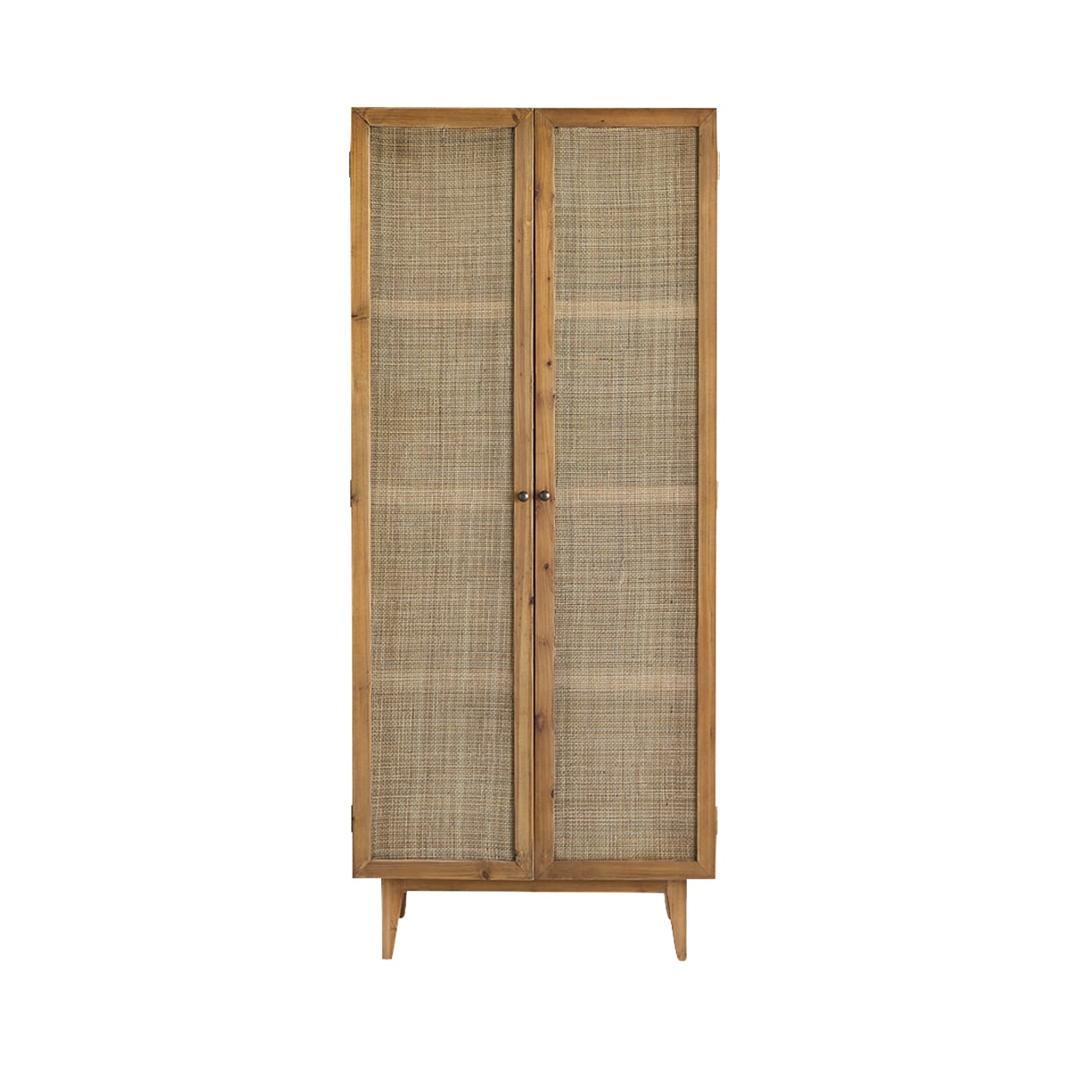 De Ninon kast van grenen met FSC®-certificaat en rotan. Rotan heeft een comeback gemaakt in hedendaagse interieurs! Of u het nu mooi vindt als enig materiaal voor een meubelstuk of rotan liever combineert met andere materialen, het voegt een vleugje authenticiteit en een zekere vintage charme toe aan de interieurs van vandaag. De perfecte combinatie van de twee materialen, de ruime opslagcapaciteit, de geringe plek die de kast inneemt en de lichtheid van het ontwerp worden zeer gewaardeerd.