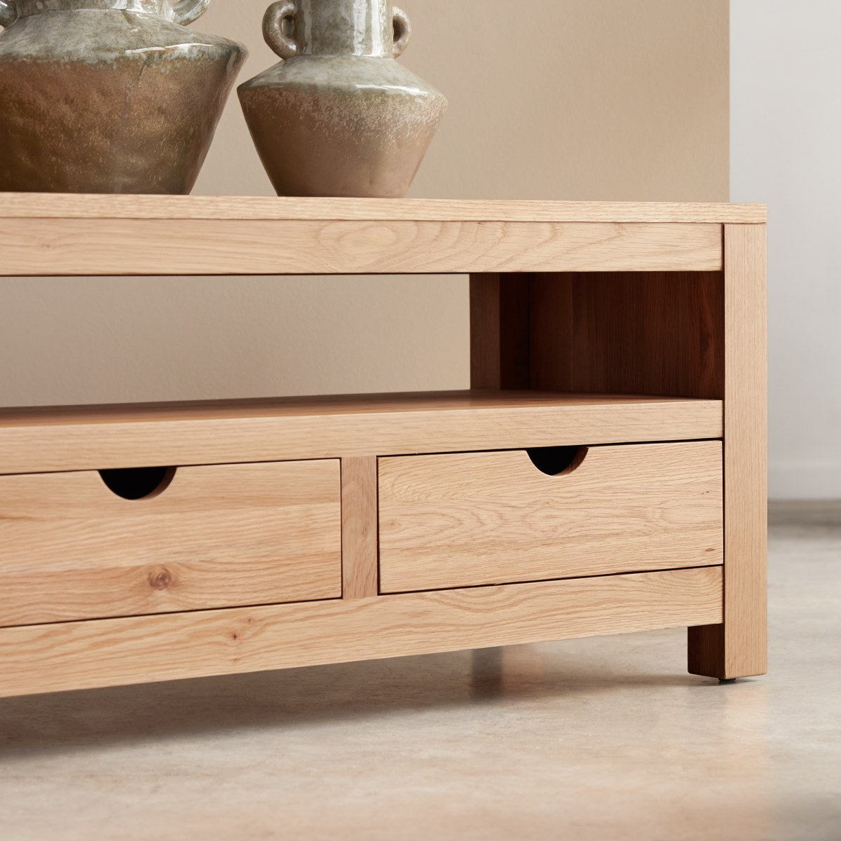 Design, authenticiteit en tijdloze charme: Het Oliver massief eiken tv-meubel heeft echt alles.
