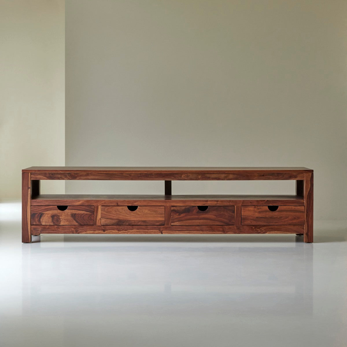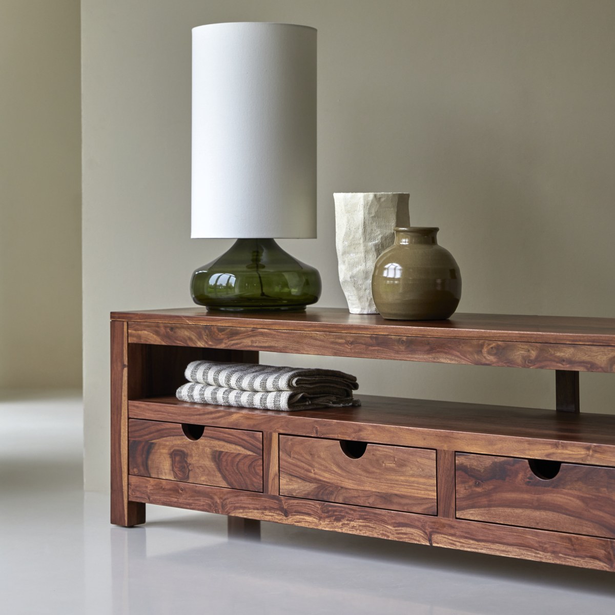 Dit tv-meubel van massief palissander voegt een chique en warme toets toe aan de woonkamer ...