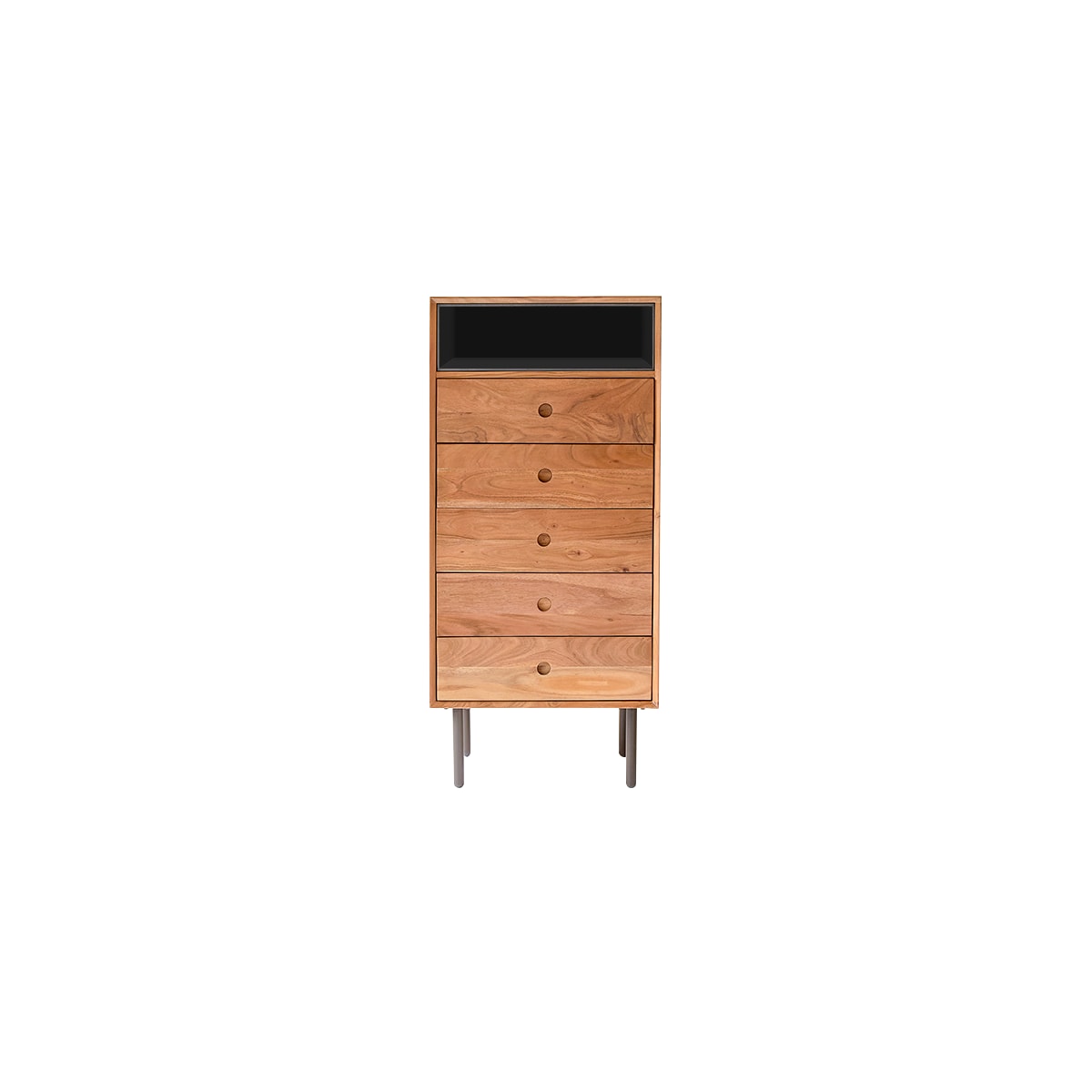 Slapen in een Scandinavisch geïnspireerde kamer is als dromen van een leven in het land der rendieren: de commode van massief acaciahout Pavel ziet eruit alsof hij rechtstreeks uit het huis van de kerstman komt. Dankzij de 5 laden en de nis kan uw kind de slaapkamer of speelkamer leren opruimen - een stap naar zelfstandigheid! En als uw kind ouder is, kan het de commode gebruiken om lesmateriaal of schoolspullen op te bergen of om kleine kledingstukken te ordenen. De commode van massief acaciahout Pavel is behandeld met beschermend vernis en is daardoor gemakkelijk te onderhouden. Als u de tijdloze charme en de mooie soberheid van onze commode waardeert, aarzel dan niet om de andere meubels uit ons assortiment in Scandinavische stijl te ontdekken.