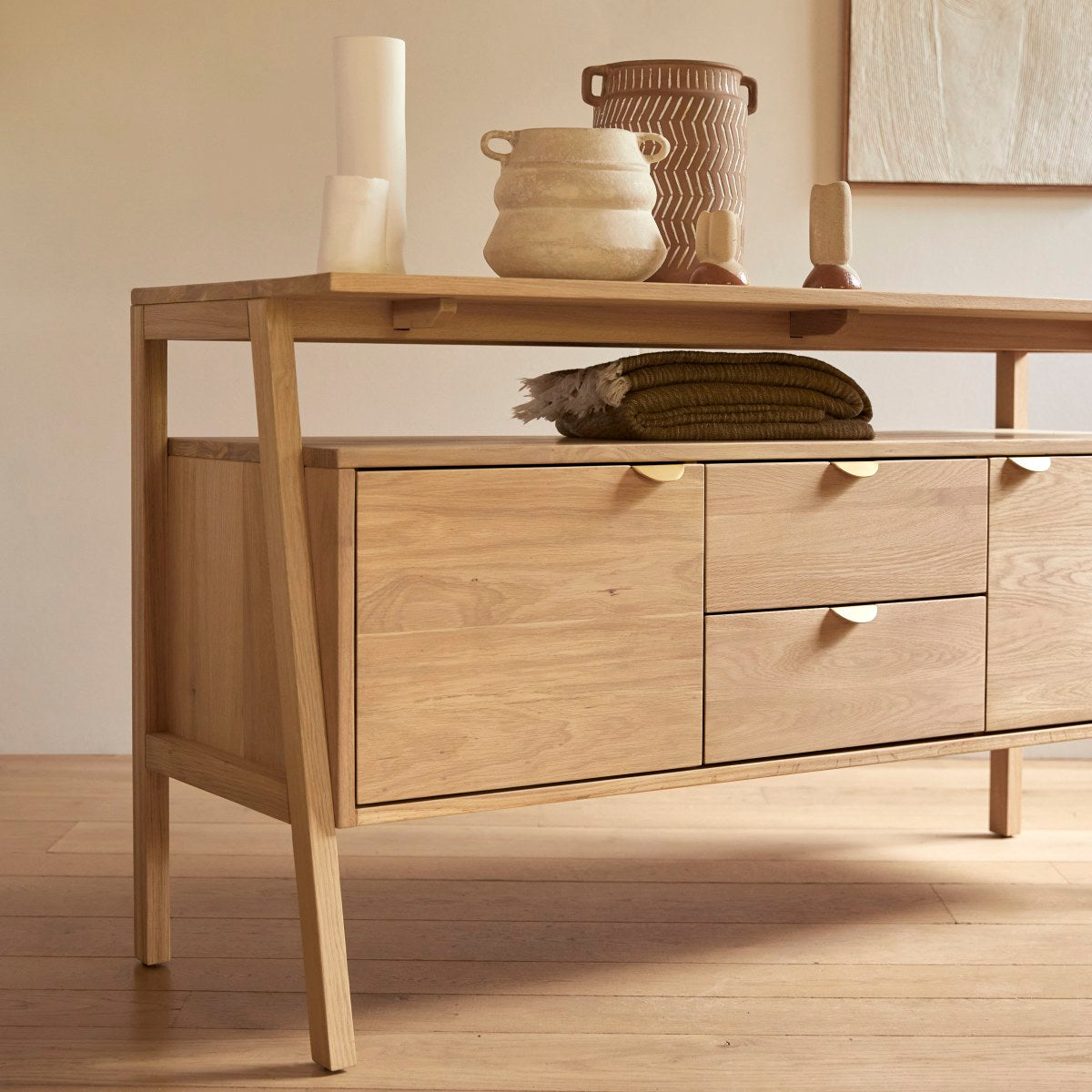 Een duidelijke Scandinavische invloed en een zeer persoonlijk ontwerp: het eikenhouten buffet Pola heeft werkelijk alles om u te overtuigen!